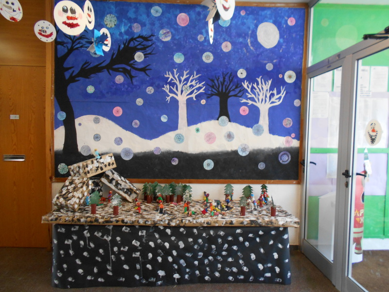 Els nens i nenes de cicle mitjà van fer el fons del pessebre i ara ja es pot observar a la porta principal de l’escola.