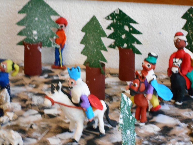 Cada alumne de 6è treballava amb un nen o nena de 2n i a cada parella els va tocar fer una figureta diferent, com per exemple: els reis, l’àngel, els pastors… elaborades amb plastilina i aguantades amb escuradents.