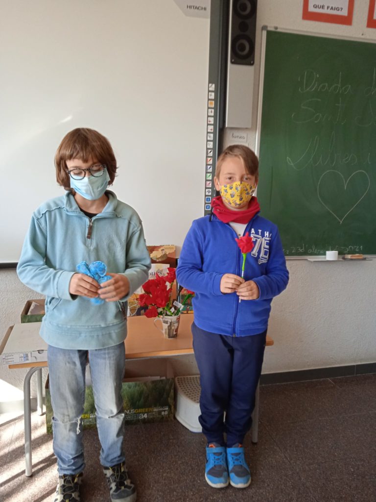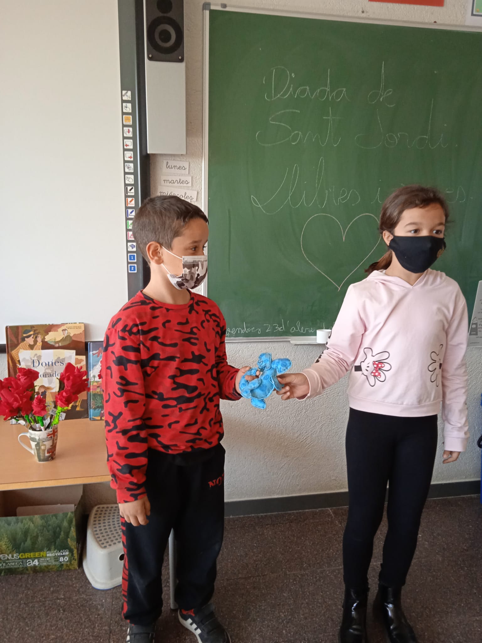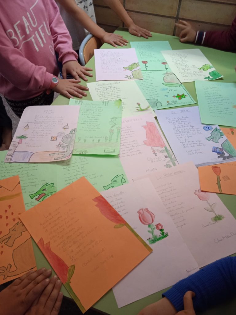 També hem triat un poema per aprendre i recitar-lo. Podíem triar entre “El drac” (Lola Casas), “La Rosa Vermella” (Isabel Barriel) i “El llibre”(Joana Raspall).
