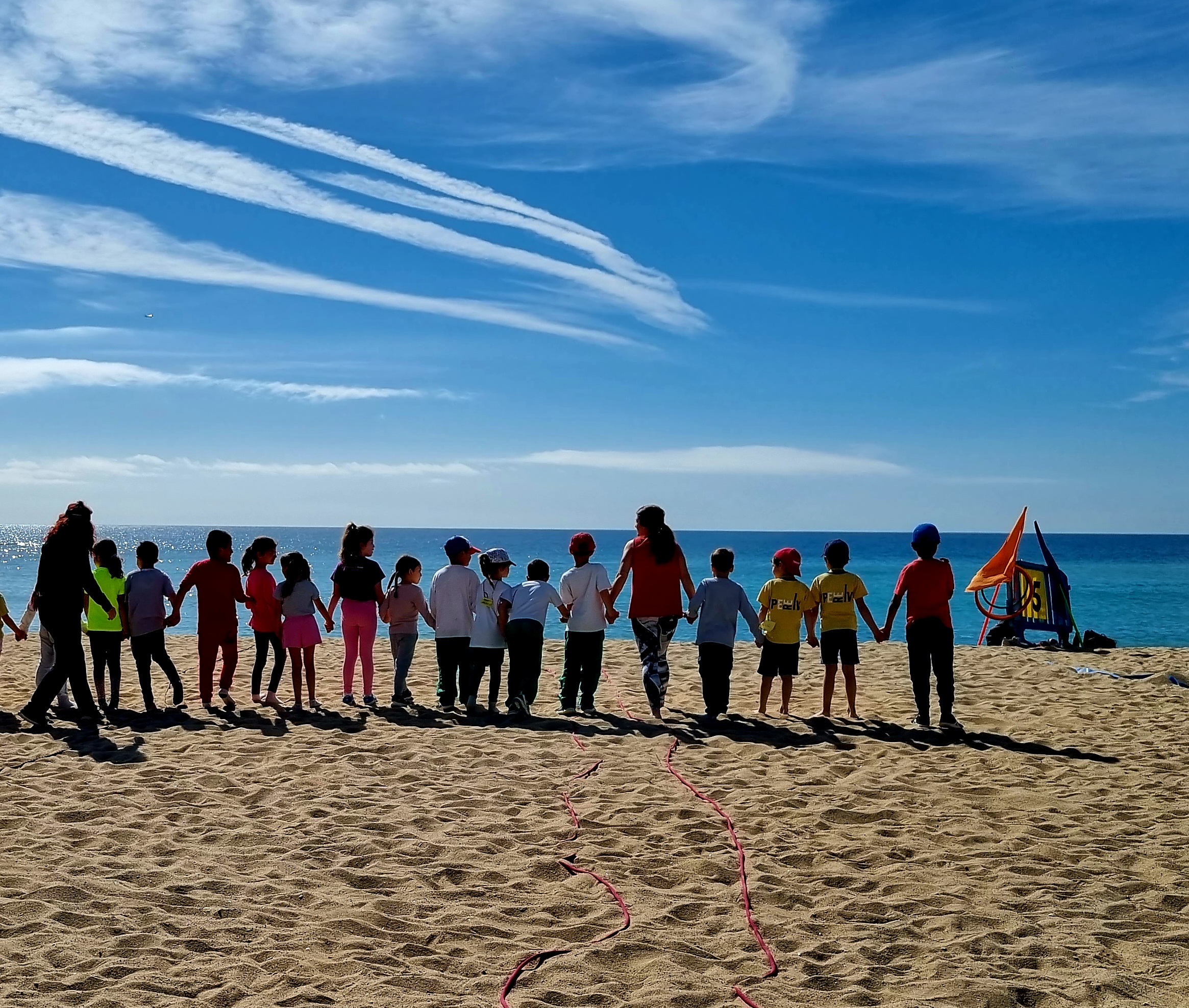 Avui, els nens i nenes de primer hem participat en l’activitat «Juguem tots junts», organitzada per l’associació Joc Viu: una jornada ludicoesportiva a la platja de la Mar Bella, on hem compartit un matí de jocs amb altres escoles del districte de Sant Martí. Hem corregut, hem saltat, ens hem cansat i també ens hem embrutat, però ens ho hem passat d’allò més bé.