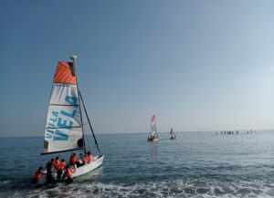 Vam anar en metro fins al Club Natació Barcelona i allà uns monitors ens van estar explicant com funcionava aquest esport i vam anar a fer un passeig amb els vaixells de vela per la platja, amb bany inclòs.