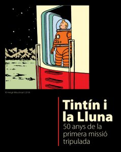 “El 1969, un ésser humà, l’astronauta Neil Armstrong, trepitjava la Lluna per primera vegada. No obstant això… Tintín ja l’havia trepitjada molt abans, el 1950! Ciència i còmic s’uneixen per explicar aquest viatge històric.