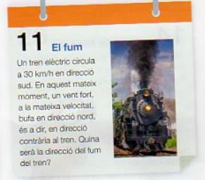 Hola de nou, famílies de 3r! Aquí teniu les respostes de la setmana anterior: Solució Repte Setmanal 21: Hi ha 7 quadrats. Solució Atrapa la falta 21: Visca! La tarifa il·limitada més barata del mercat. REPTE SETMANAL 22: El fum. Un tren elèctric circula a 30 Km/h en direcció sud. En aquest mateix moment, un