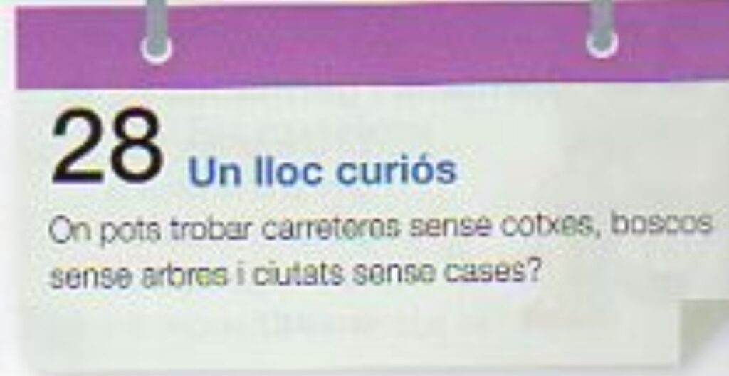 Hola famílies de 3r! Us deixem els resultats del Repte Setmanal i l’Atrapa la falta 23. RS 23: AF 23: POTS GUANYAR TOT AIXÒ. 2 DÈCIMS DE LOTERIA, MASSATGE 20 MINUTS PER NOI/A. Els nous Reptes Setmanals i Atrapa la falta 24: RS 24: On pots trobar carreteres sense cotxes, boscos sense arbres i ciutats sense