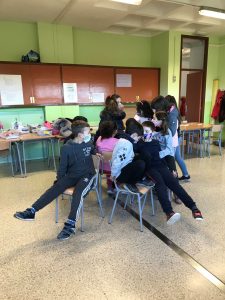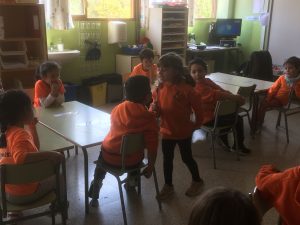Estem treballant molts aspectes d’aquest art, que ens serveixen per treballar el nostre cos i a més a més tota una sèrie d’habilitats comunicatives. Treballem el català oral i començarem a treballar el vallenc, coneixent localismes i la pronúncia que ens caracteritza. El teatre ens serveix per expressar sentiments, per connectar amb els i les companyes. Ens ajuda a treballar l’expressió corporal, a treballar en equip i molt important; ens ajuda a jugar, a inventar personatges, viure situacions i experiències fantàstiques i inimaginables.