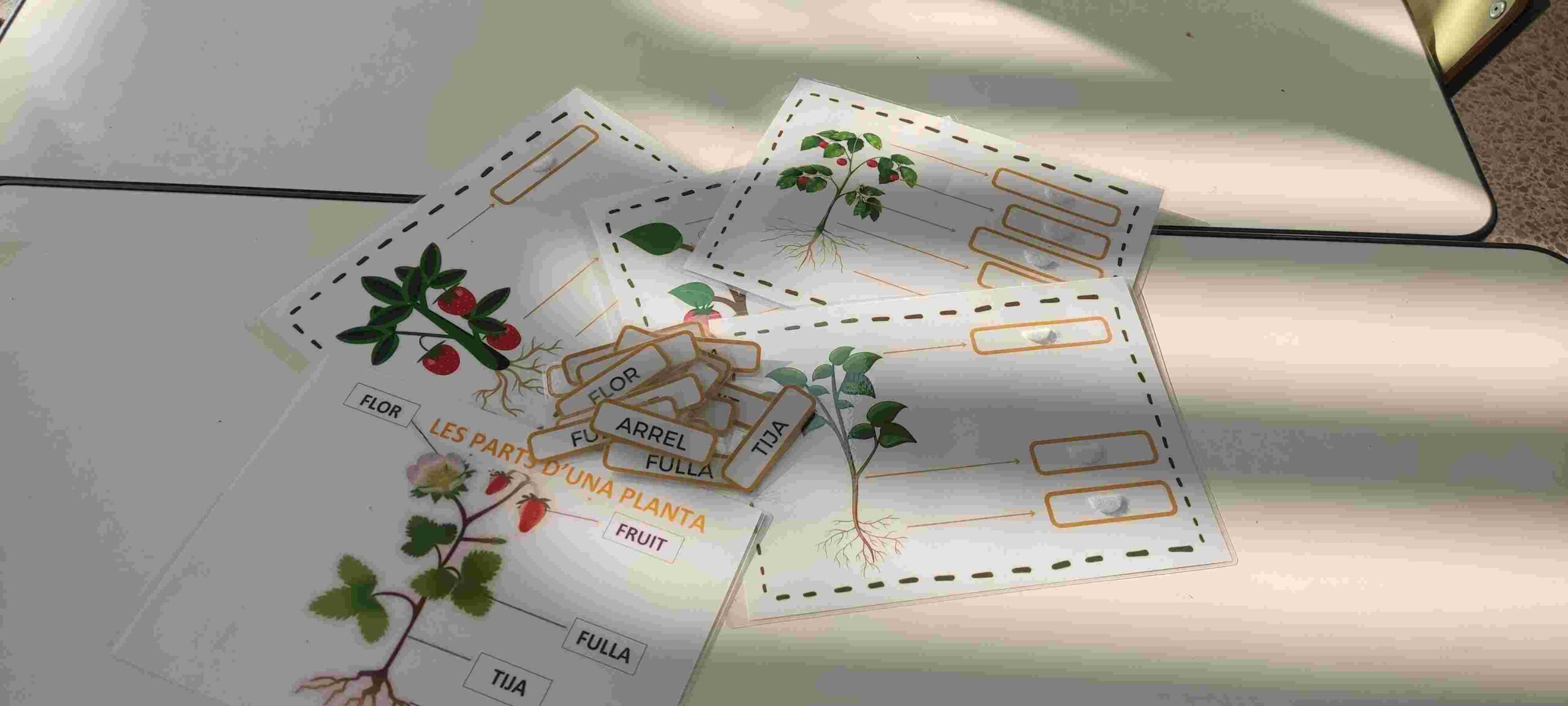 Hem après a mesurar les plantes i a comparar-ne les mides, a classificar-les i fer sèries segons la forma o el color de les seves fulles, i hem practicat el compteig observant quantes fulles o flors hi havia en cada tija.