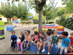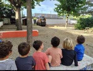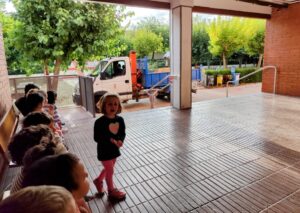Aquesta és una experiència aparentment senzilla. Però, què passa quan donem temps? Se n’han adonat de la importància d’estar atents als sons del voltant; han entès que les seves propostes són valuoses i tingudes en compte; s’ha incentivat la curiositat i ganes d’aprendre; han après a desplaçar-se amb prudència pel lateral del pati i han observat amb quietud per no prendre mal; han agraït la feina als operaris; han esperat a poder jugar al pati; han conversat; han debatut; han fet connexions entre coneixements anteriors (en aquest cas han relacionat la pala, el rasclet i la galleda amb els camions que teníem davant). Fins i tot, va sortir una conversa sobre el pes del camió i la velocitat a la qual es podria desplaçar si anava tan carregat. Com podeu veure, les criatures han estat les protagonistes d’aquest petit projecte. Un projecte que ha durat un matí.