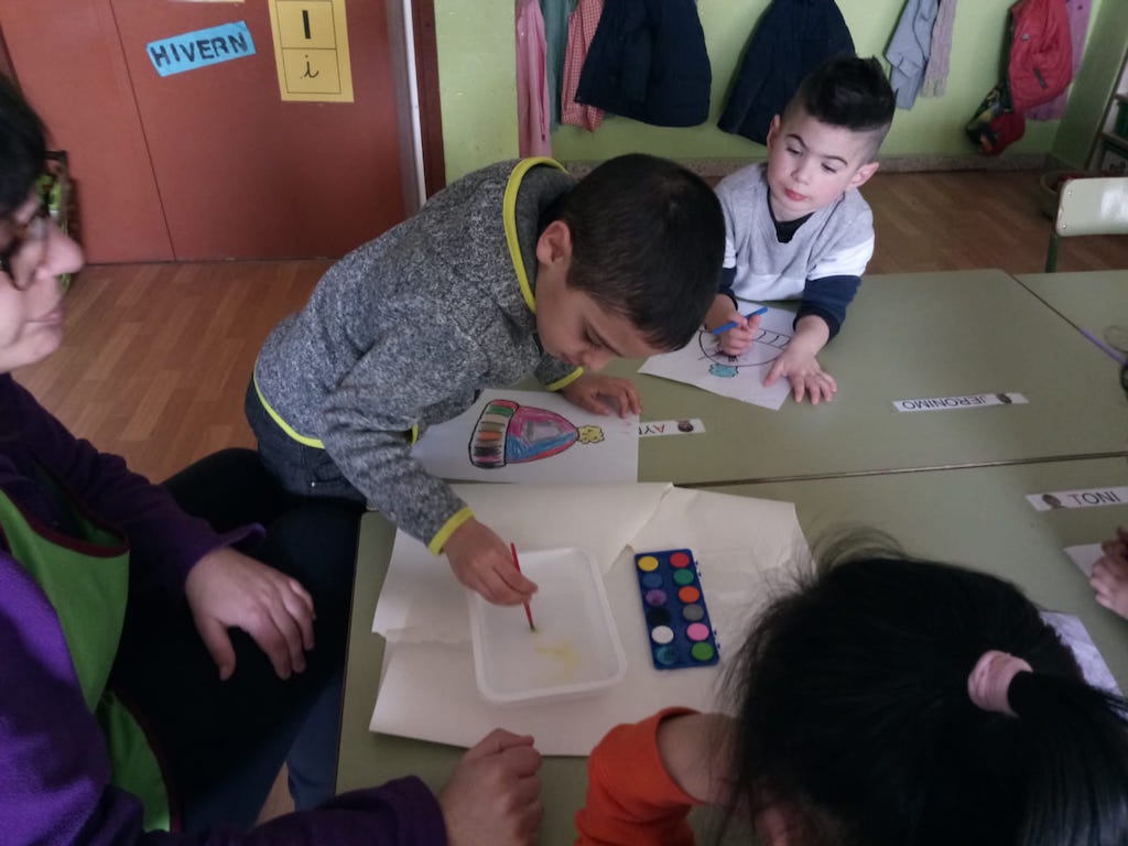 Cadascú de nosaltres va decorar-n’hi un, amb molts colors diferents. A part dels plastidecors, també vam pintar amb aquarel·les, va ser molt xulooooooo! I tot gràcies al tió, que abans de vacances ens va cagar força material per a què puguem continuar fent activitats a l’hora del menjador.