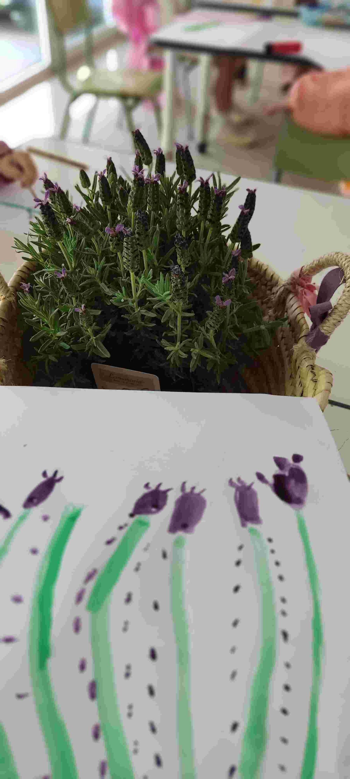 Hem començat observant i dibuixant l’espígol amb la tècnica de les aquarel·les, deixant que els tons suaus i el moviment del pinzell transmetessin la delicadesa d’aquesta planta tan especial.