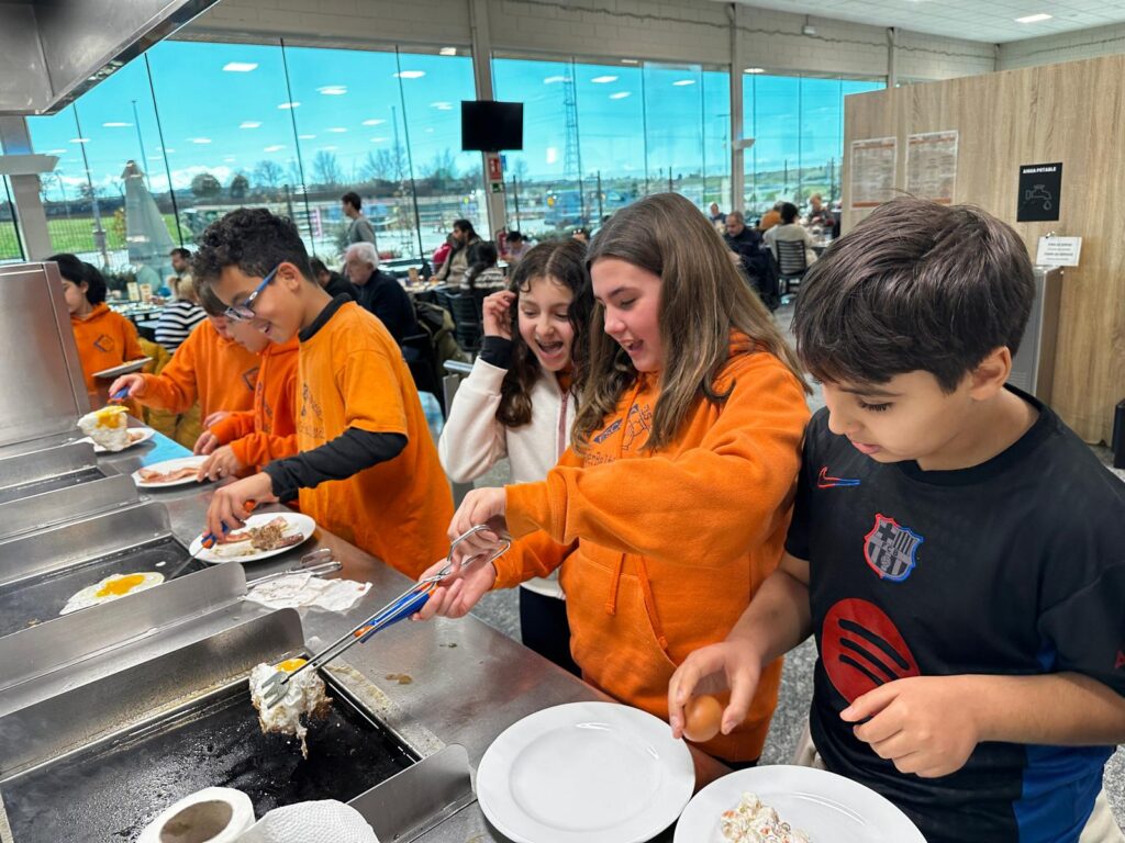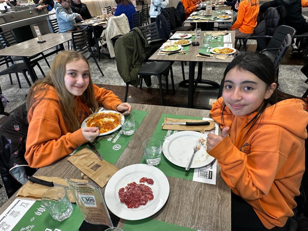 Després de tanta història, va arribar el moment de recuperar forces. Ens vam dirigir al restaurant de l’Àrea de Guissona, on ens van convidar a un dinar de bufet lliure. Va ser un dels moments més divertits per tothom, ja que vam poder triar entre una gran varietat de plats i compartir una estona amb els nostres companys i companyes al voltant de les taules.
