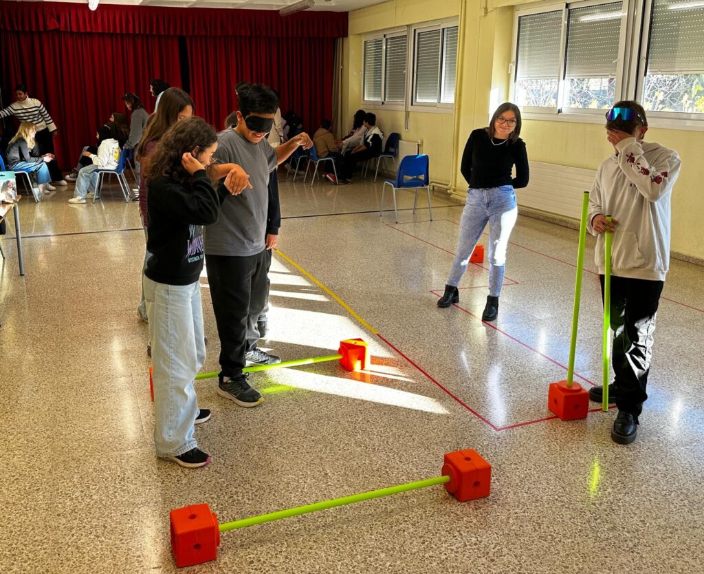Avui ens han visitat els nois i noies de la fundació GINAC per fer-nos participar en un taller per sensibilitzar-nos amb els problemes que pateixen, en el seu dia a dia, les persones amb discapacitat. Han muntat un circuit d’activitats en què ens hem posat a la pell de persones amb diferents tipus de discapacitat, visual, auditiva…