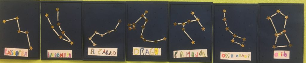 Les constel.lacions Feu un comentari / Per Montse Cunillera / 12 de novembre de 2018 / 2n / constel.lacions., projecte, univers Per finalitzar el treball de les constel.lacions, hem posat fil a l’agulla i amb molta traça hem creat una constel.lació. Hem utilitzat llana, agulla de plàstic i gomets.