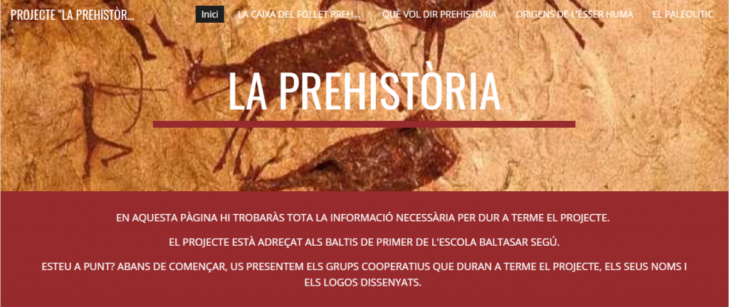 PROJECTE: LA PREHISTÒRIA Feu un comentari / Per Montse Cunillera / 10 d'octubre de 2019 / 1r Primària / prehistòria, projecte Durant aquest primer trimestre, els Baltis de primer durem a terme el projecte “la prehistòria” Aquí podreu seguir el que anem fent i també l’anirem utilitzant per treballar durant aquest temps i ens hi anirem familiaritzant.