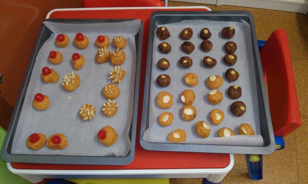 Les mares del Loay, Ouweys i Israe ens han ensenyat a fer galetes de xocolata, cirera i d’ametlla. Mireu quin goig que fan! Estaven boníssimes!