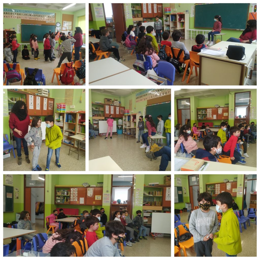 Els Baltis de 2n, gràcies al forat màgic, van viatjar en el temps passant per les etapes de la Prehistòria, l’Edat Antiga fins arribar a l’Edat Mitjana. Al llarg de la sessió de Teatre van escenificar “La llegenda se Sant Jordi”. Van poder viure i veure l’estructura que tenien les històries, aplicant-ho de forma vivencial