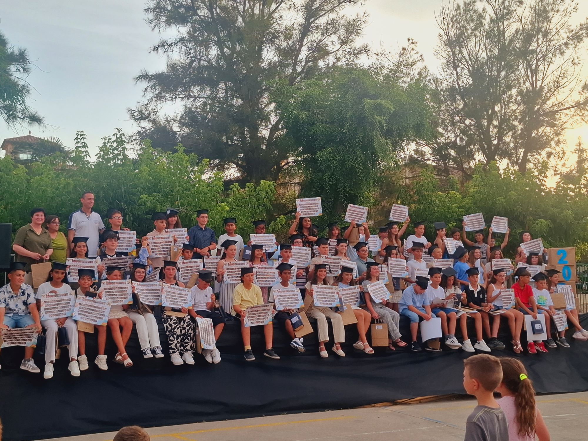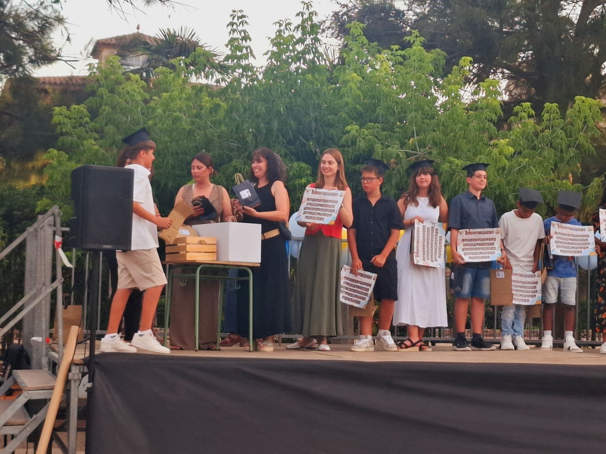 Aquest any van fer un espectacle basat en el programa “La teva cara em sona”, amb unes imitacions plenes de ritme i il·lusió. Després van anar pujant a l’escenari per rebre l’orla gentilesa de l’AFA, una samarreta de part de les famílies i un detall de l’escola. Va ser un comiat molt bonic i emotiu!