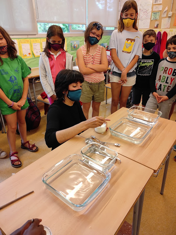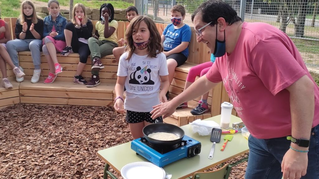 Hola som la classe de 4t i fa uns dies ens va visitar l’Esteve Camps, el pare de la Cristina, una companya de classe. Tots 2 ens van fer el taller de fer creps! Van quedar deeelicioseees! Ens van ensenyar el procés de com fer les creps i ens van fer endevinar els ingredients. La