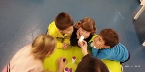 Els racons multiàrees els hem dividit en dues parts. Durant una setmana hem fet racons de tipus lliure, dedicats més aviat a l’experimentació; i una altra setmana hem fet racons guiats per començar a treballar els cinc sentits i la cara, més concretament el gust i l’olfacte.