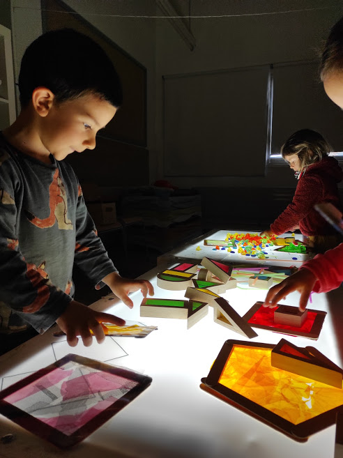 Els racons multiàrees els hem dividit en dues parts. Durant una setmana hem fet racons de tipus lliure, dedicats més aviat a l’experimentació; i una altra setmana hem fet racons guiats per començar a treballar els cinc sentits i la cara, més concretament el gust i l’olfacte.