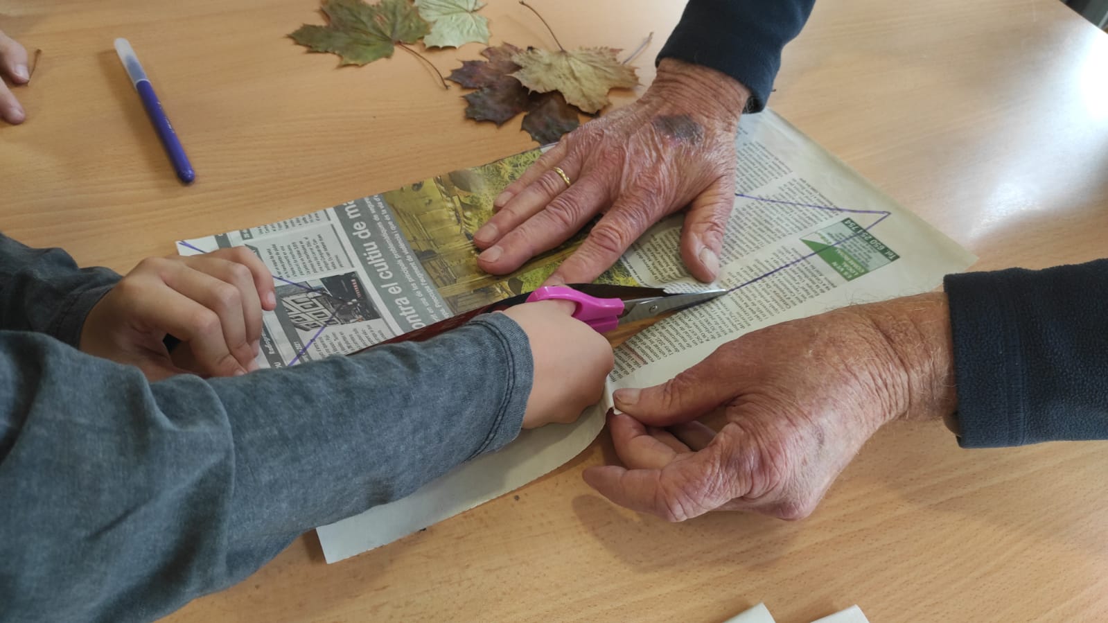Nosaltres hem fet una activitat de construir unes banderoles amb fulles que vam anar a buscar al bosc i amb paper de diari perquè és molt important reciclar.