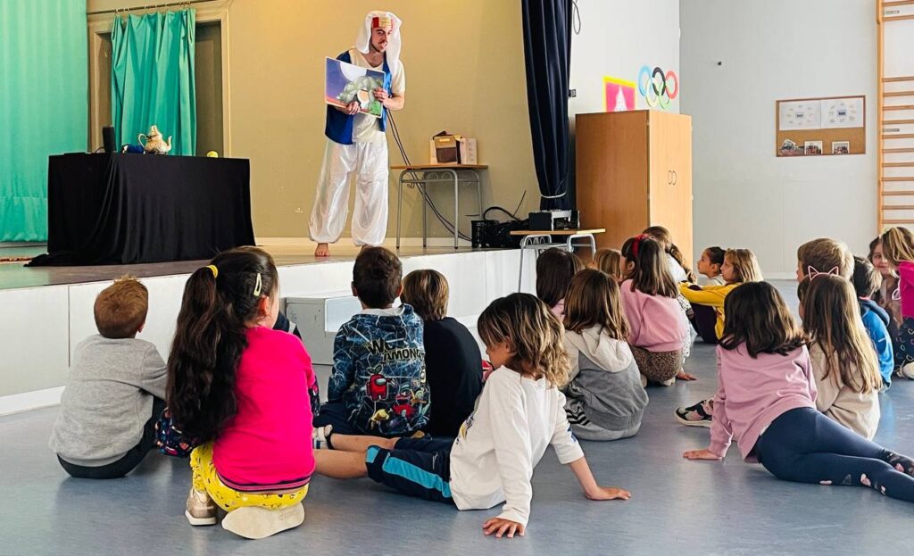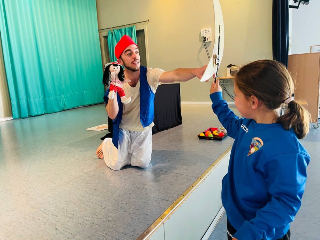 We enjoyed a performance from an English theatre company. The show was called ‘Aladdin’ and we had a great time learning about the different characters and following the storyline in English. Some of us got to join in with the actor on stage, help Aladdin with his adventure and even show Aladdin some new words!