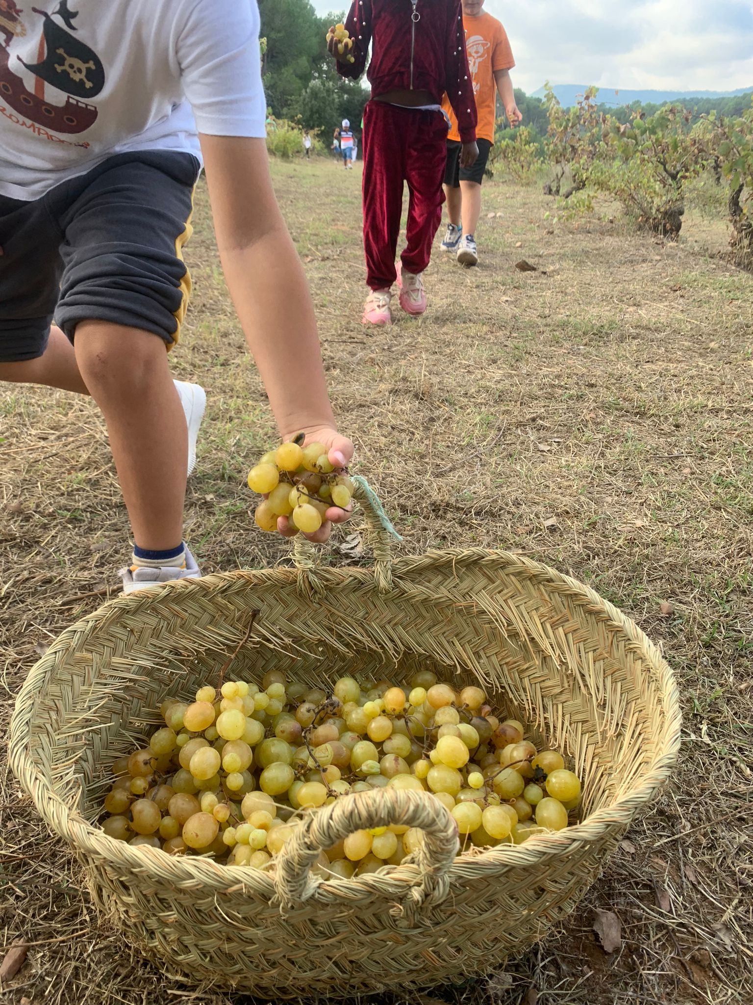 Vam poder agafar el raïm directament del cep i vam veure la maquinària que es feia servir antigament, així com trepitjar el raïm per extreure el suc (tal i com es feia abans).