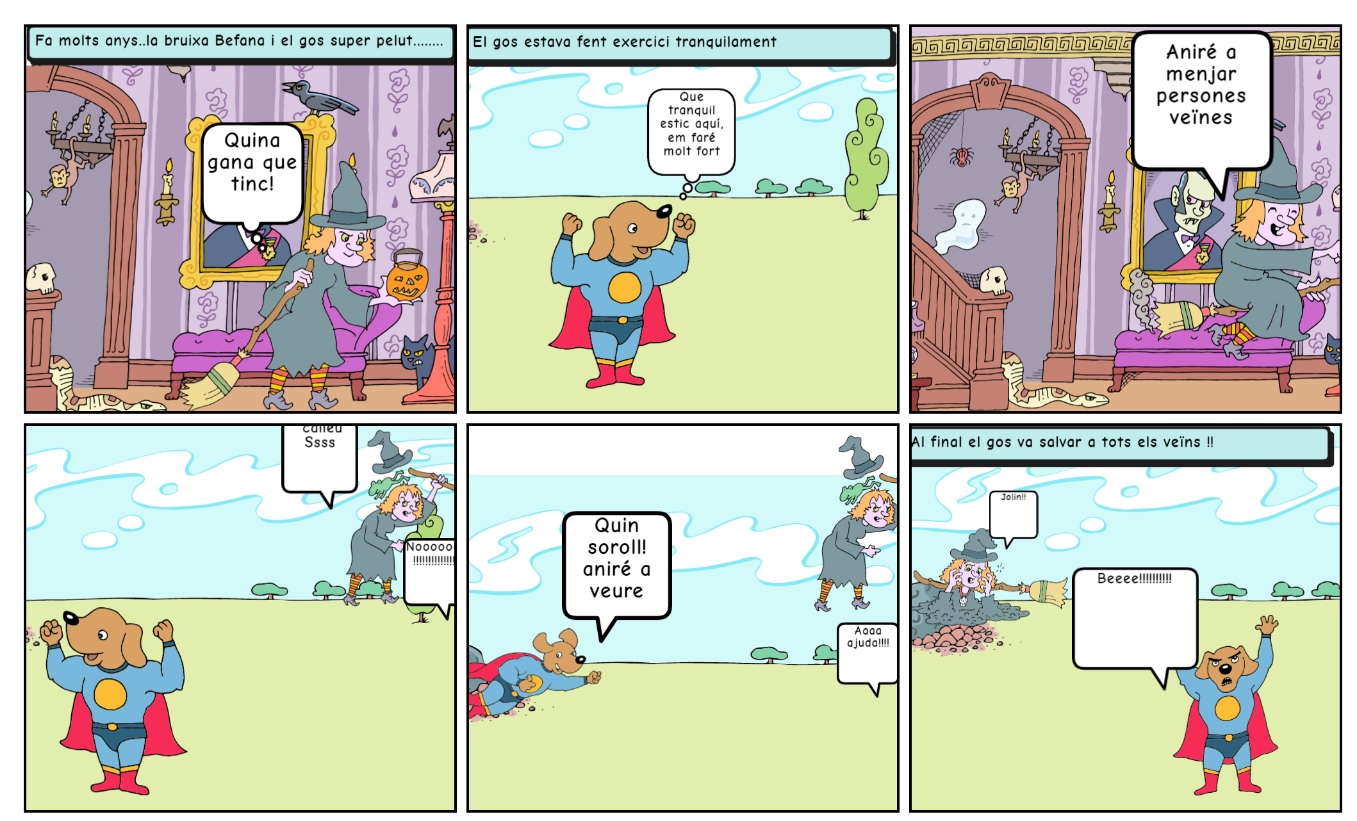A 5è hem estat aprenent a fer còmics durant varies setmanes. I per acabar, hem elaborat un còmic, en parelles, utilitzant una aplicació de les tablets. Els resultats han estat molt originals i divertits.