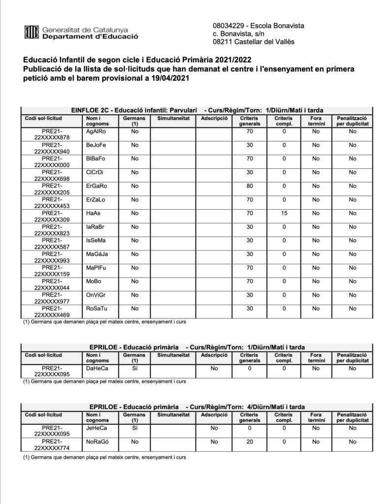 PUBLICACIÓ LLISTAT BAREM PROVISIONAL ED. INFANTIL I PRIMÀRIAPer admin / 19 d'abril de 2021 / Famílies Infantil Portada Primària / Matriculació, P, preinscripció