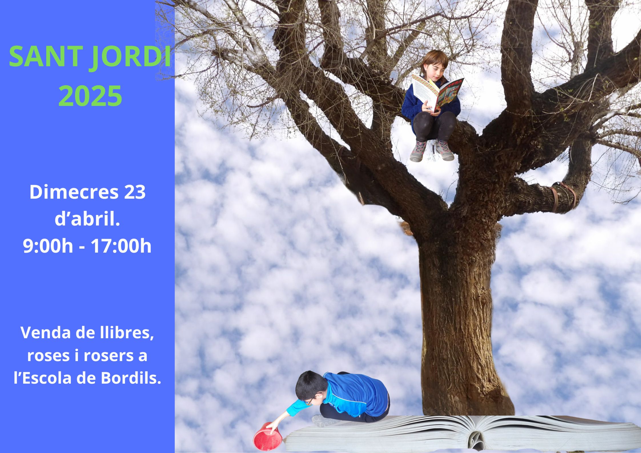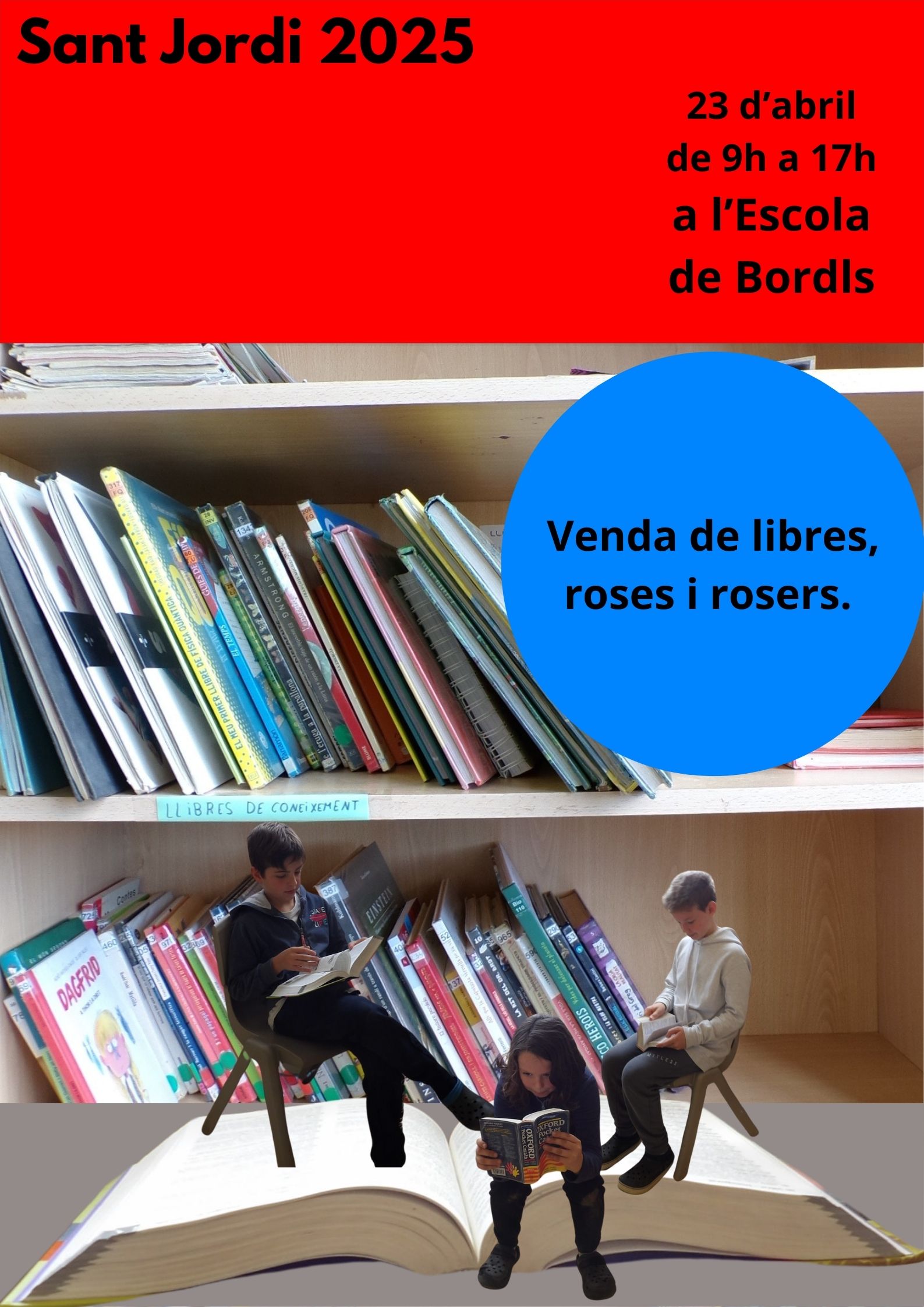 Els alumnes de cicle superior vendran llibres, roses i rosers a l’entrada de l’escola, de 9h a 17h de la tarda.