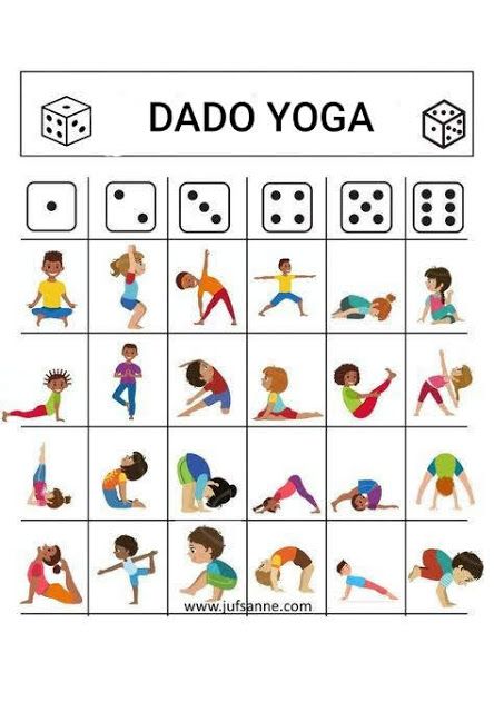 El següent joc ho haureu de fer amb aquesta imatge de postures de ioga. Tireu el dau, consulteu el número sortit (triar una posició de les quatre) i aguanteu 5 segons cada posició, abans de tornar a tirar! Superareu totes les posicions?! Sort!