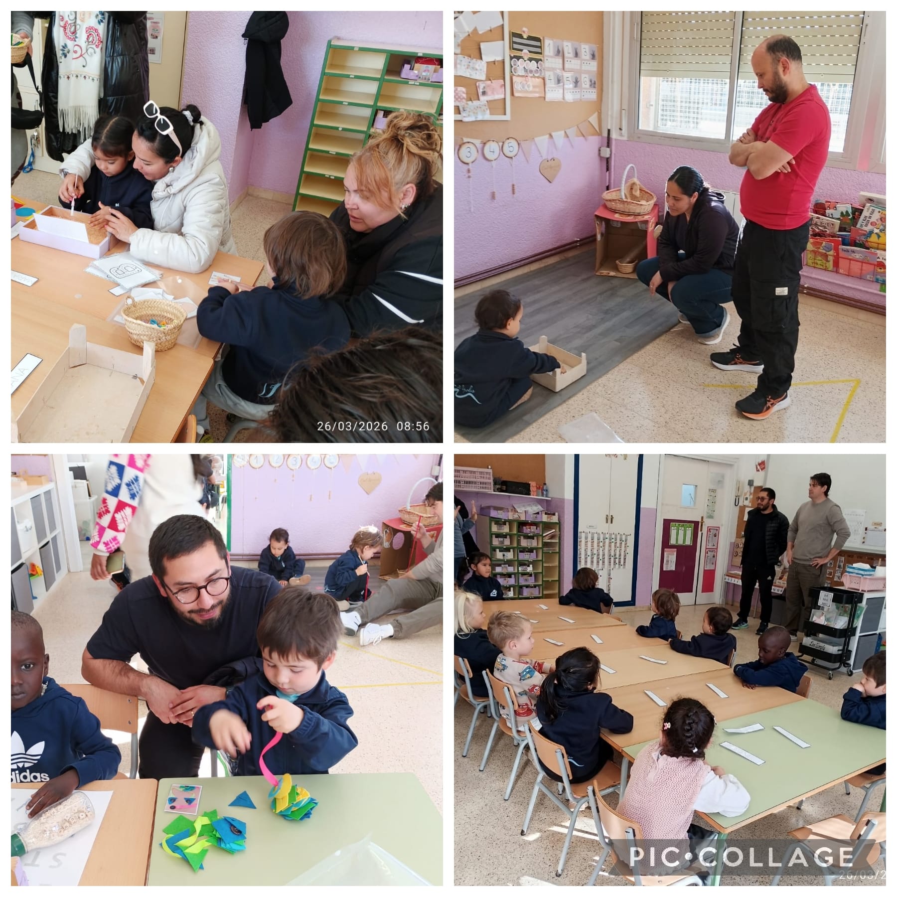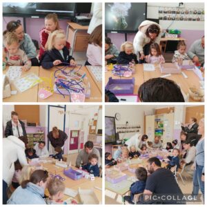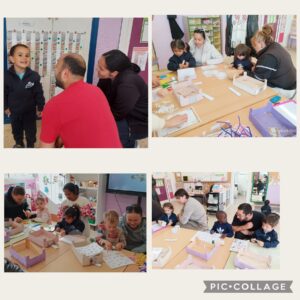 Les famílies han entrat a la classe per acompanyar els seus infants en una sessió de propostes, un espai on els nens i nenes poden aprendre a través del joc manipulatiu i la descoberta. Ha estat un moment molt enriquidor, tant per als infants com per a les famílies, que han pogut veure de prop com treballem a l’aula i com els seus fills i filles interactuen amb els materials i amb els companys i companyes.