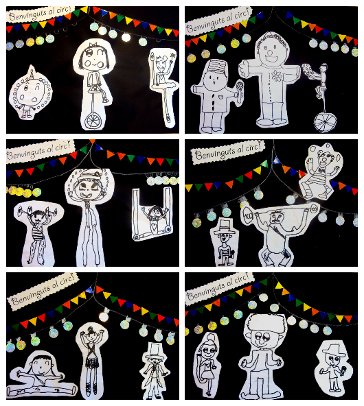 PALLASSOS MATERIAL NECESSARI paper blanc DIN A-3 llapis i goma marcador permanent negre ceres grasses aquarel·la liquida pinzell retalls de papers de regal cola paper adhesiu vellutat vermell PROCÉS Dibuixem el pallasso amb llapis Repassar amb el marcador permanent Pintar les formes amb les ceres Aplicar l’aquarel·la al fons Mentre s’eixuga retallar el nas i […]