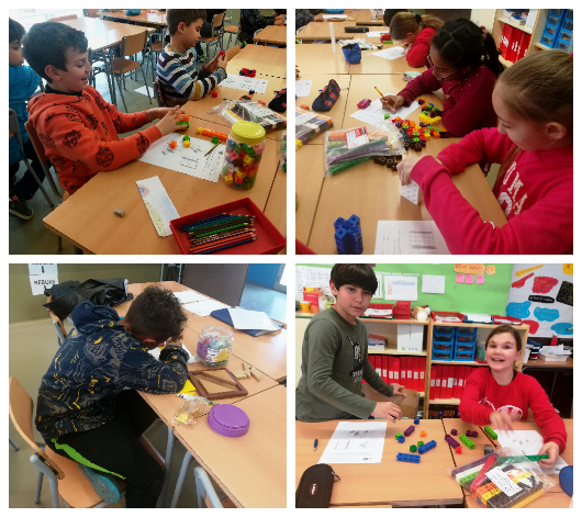 A cinquè treballem racons matemàtics, tangram, descomposició decimals, orientació espacial, amb material manipulatiu.
