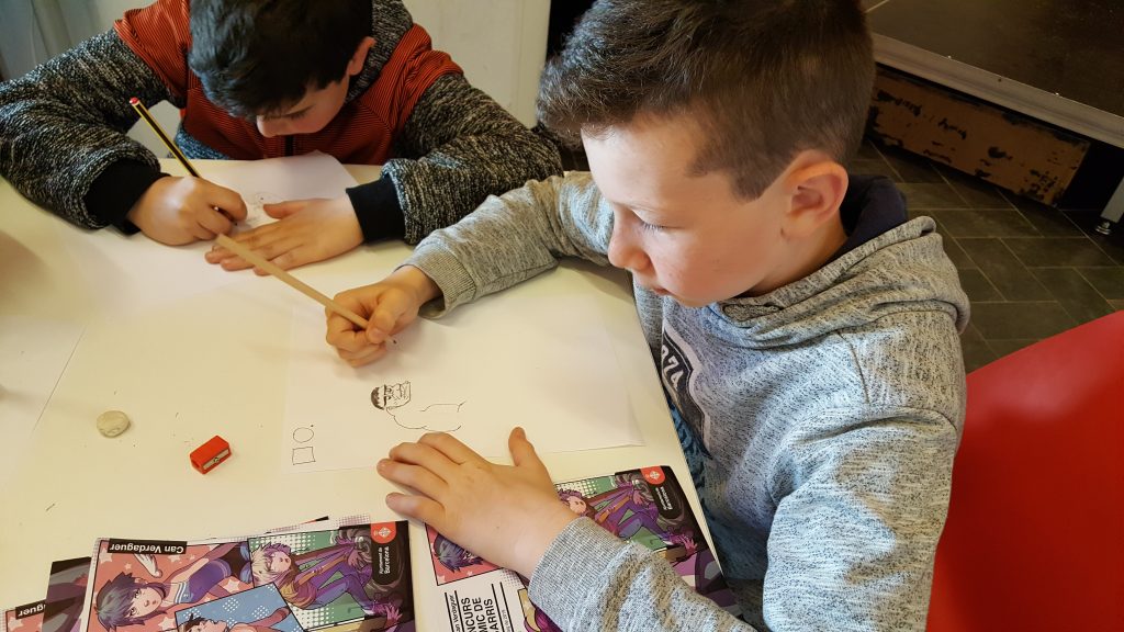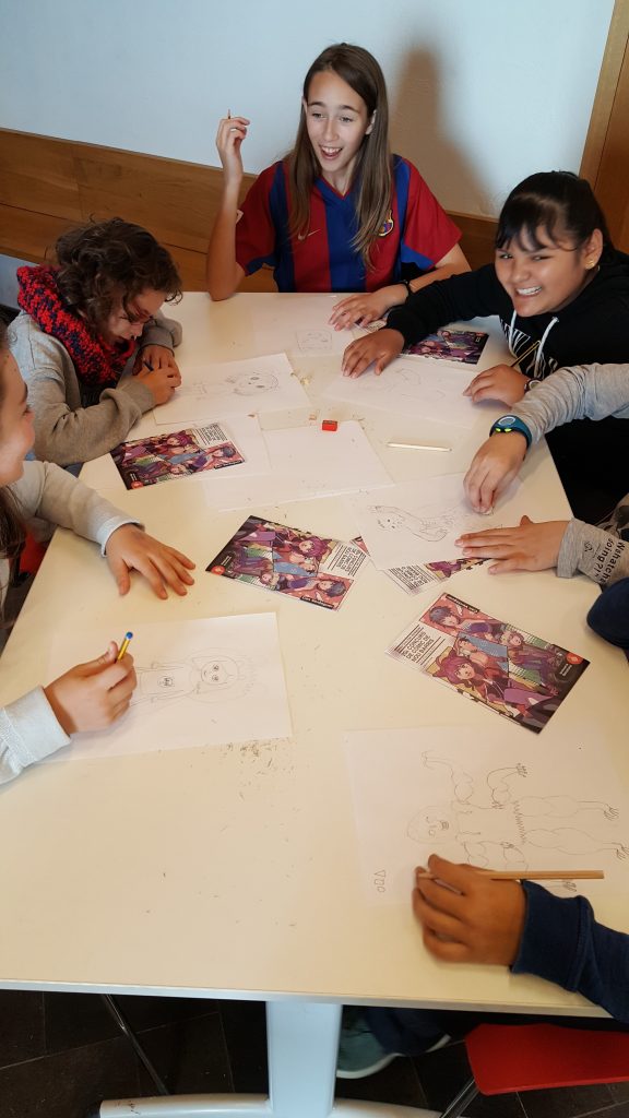 Abans de marxar de vacances a cinquè hem anat a Can Verdaguer a fer un taller de còmic. Allà ens han ensenyat a construir personatges, veure com han fet molts dels més coneguts i a diferenciar per les formes, que caracteritza als superherois i els antiherois. Amb la Sara i el Fran hem après molt i a més hem sortit amb moltes obres d’art que ens han volgut dedicar!