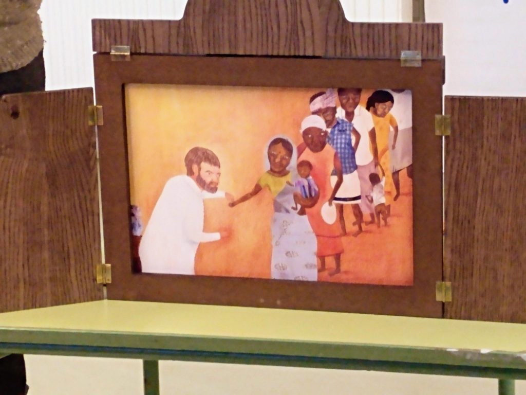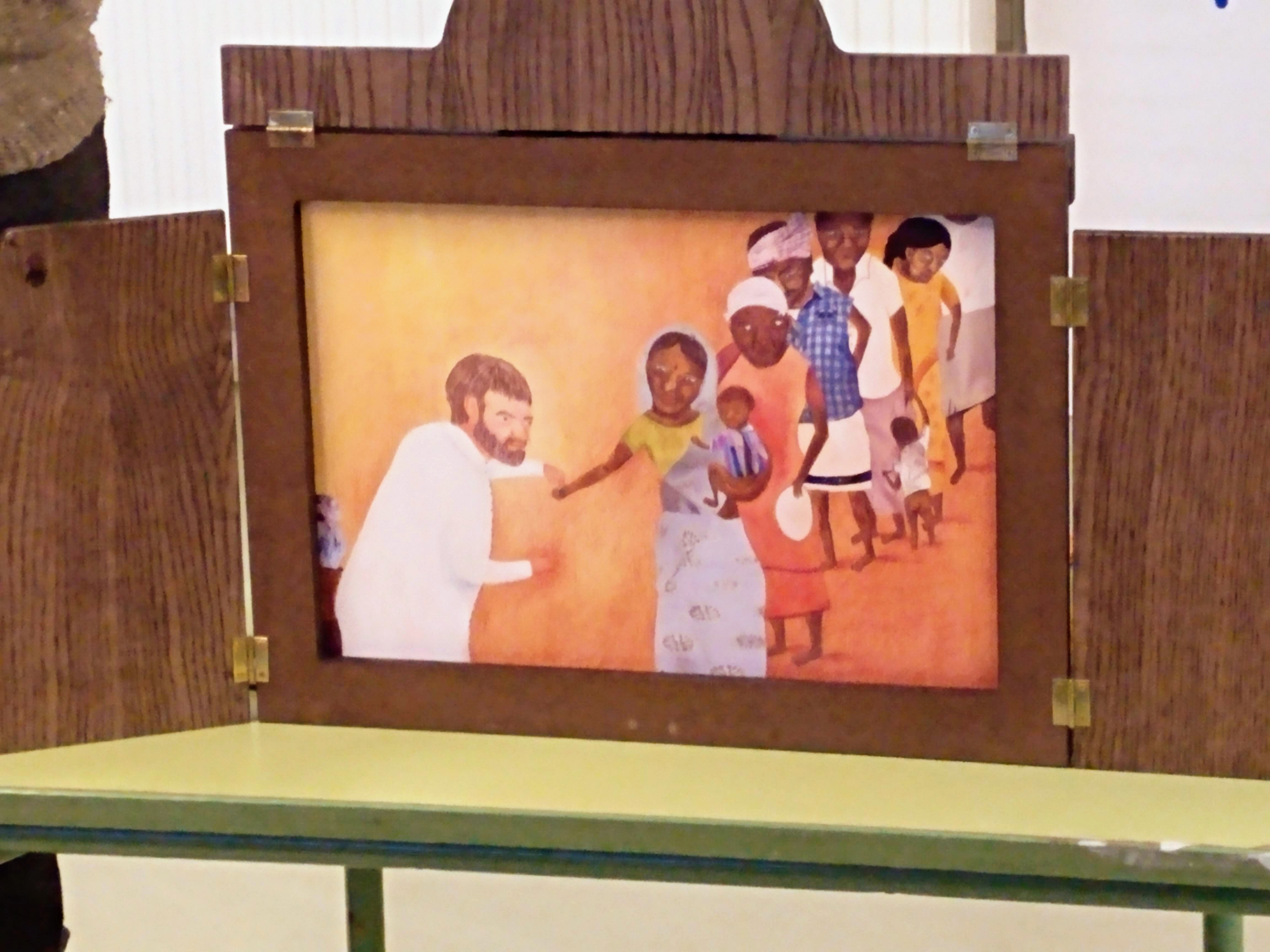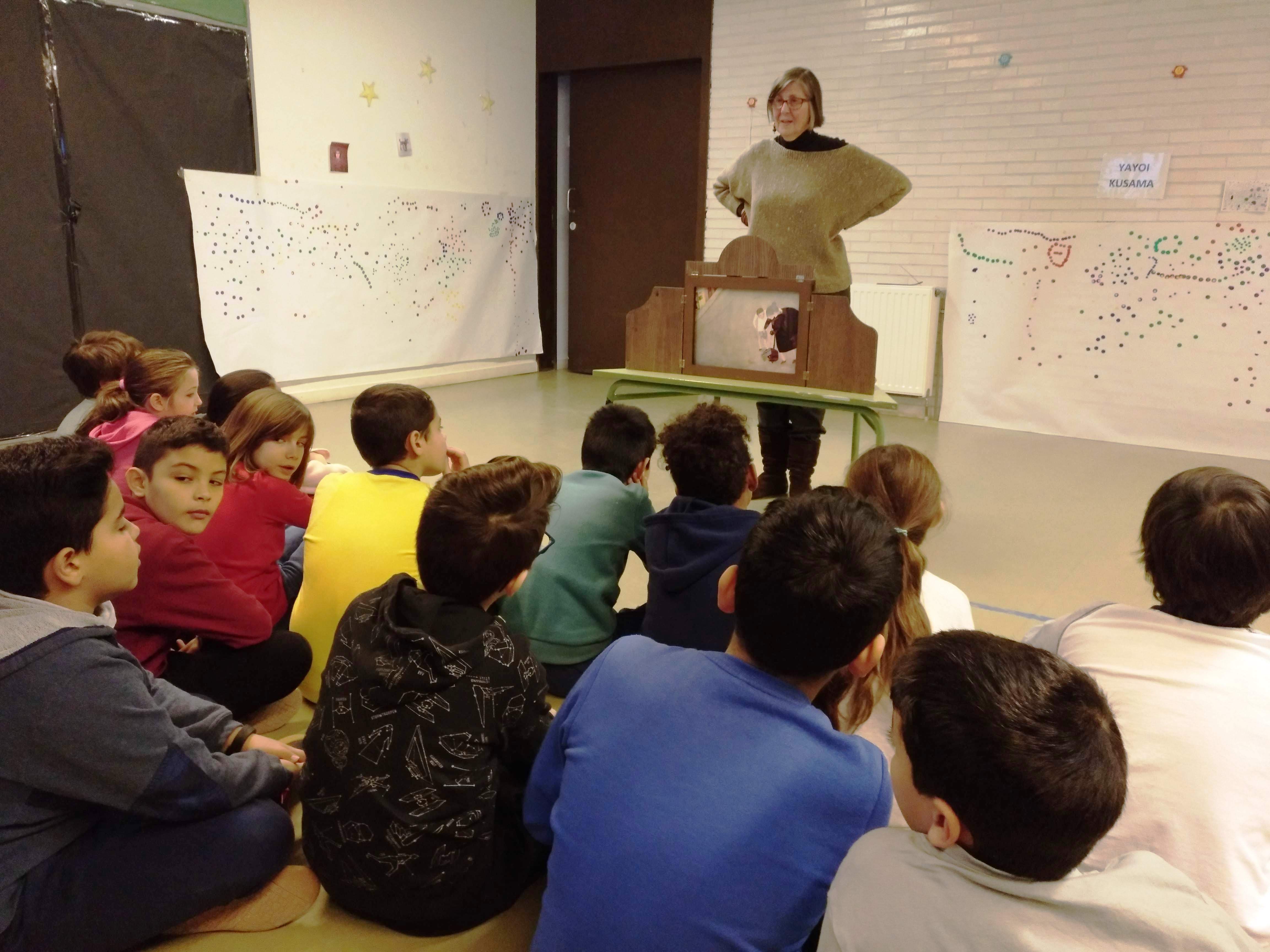 La seva història ha estat explicada per una voluntària de la Fundació Vicente Ferrer que ens ha ensenyat la tècnica del Kamishibai: és una forma d’explicar històries molt popular al Japò.
