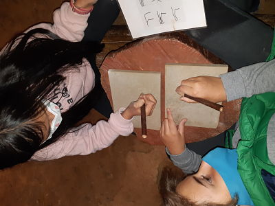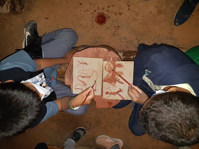 Hem visitat les coves i hem fet un taller d’art rupestre.