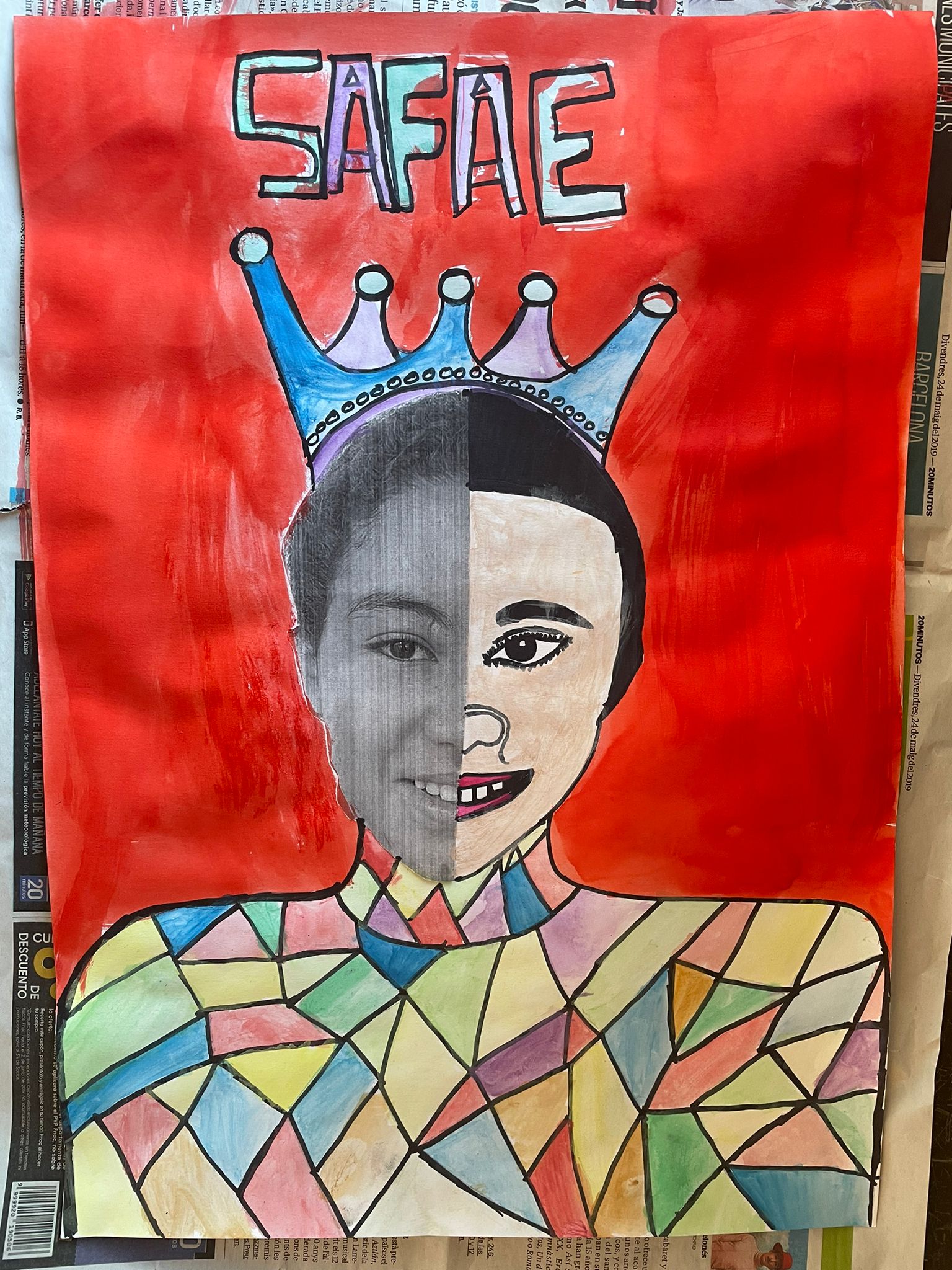 3. Dibuixar figures geomètriques al nostre cos i la corona a sobre del cap.