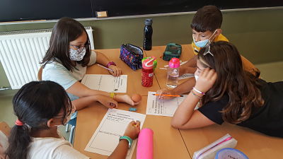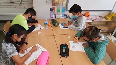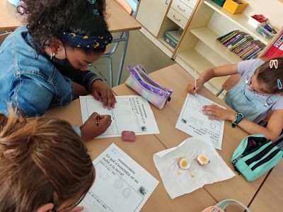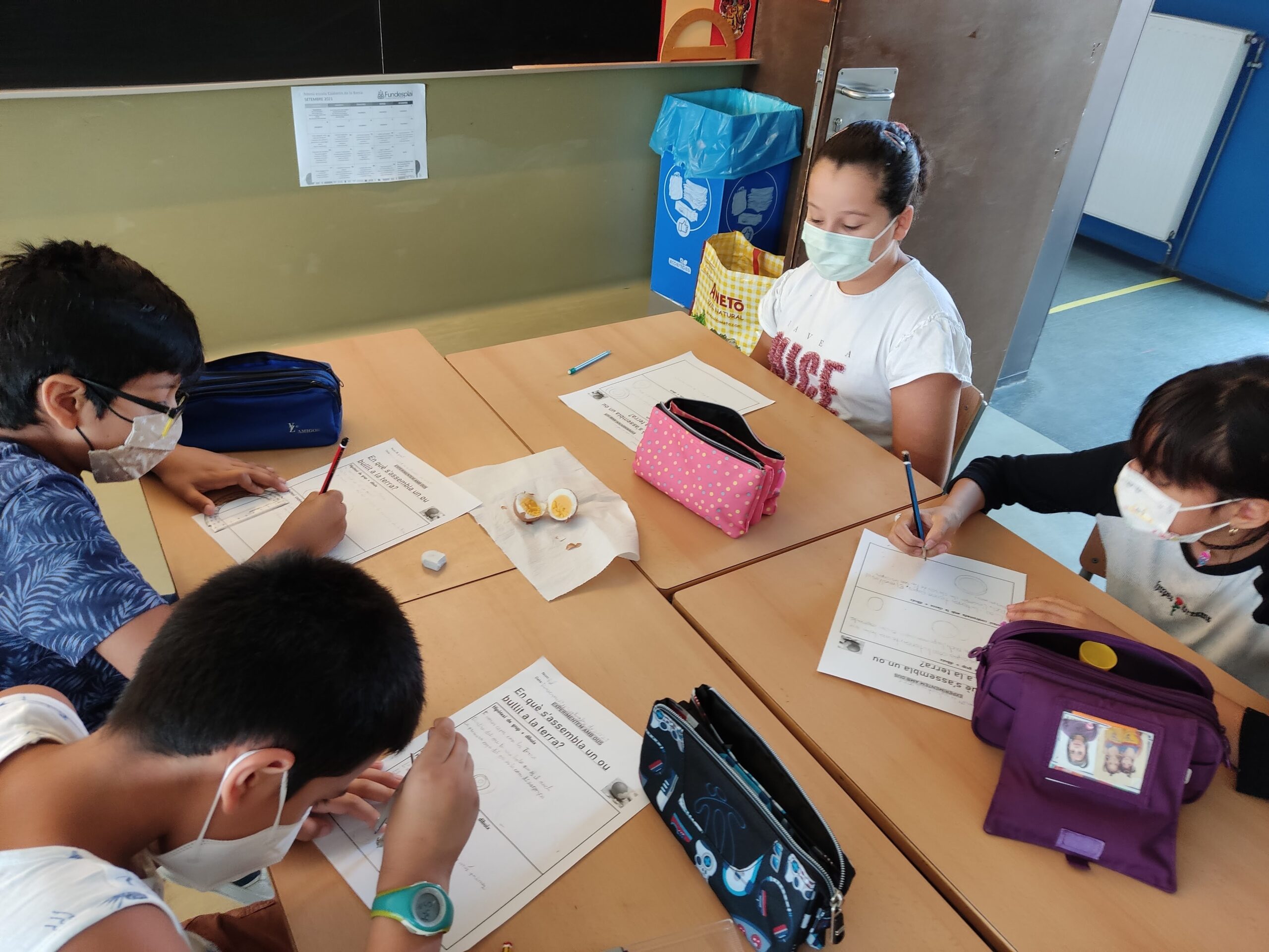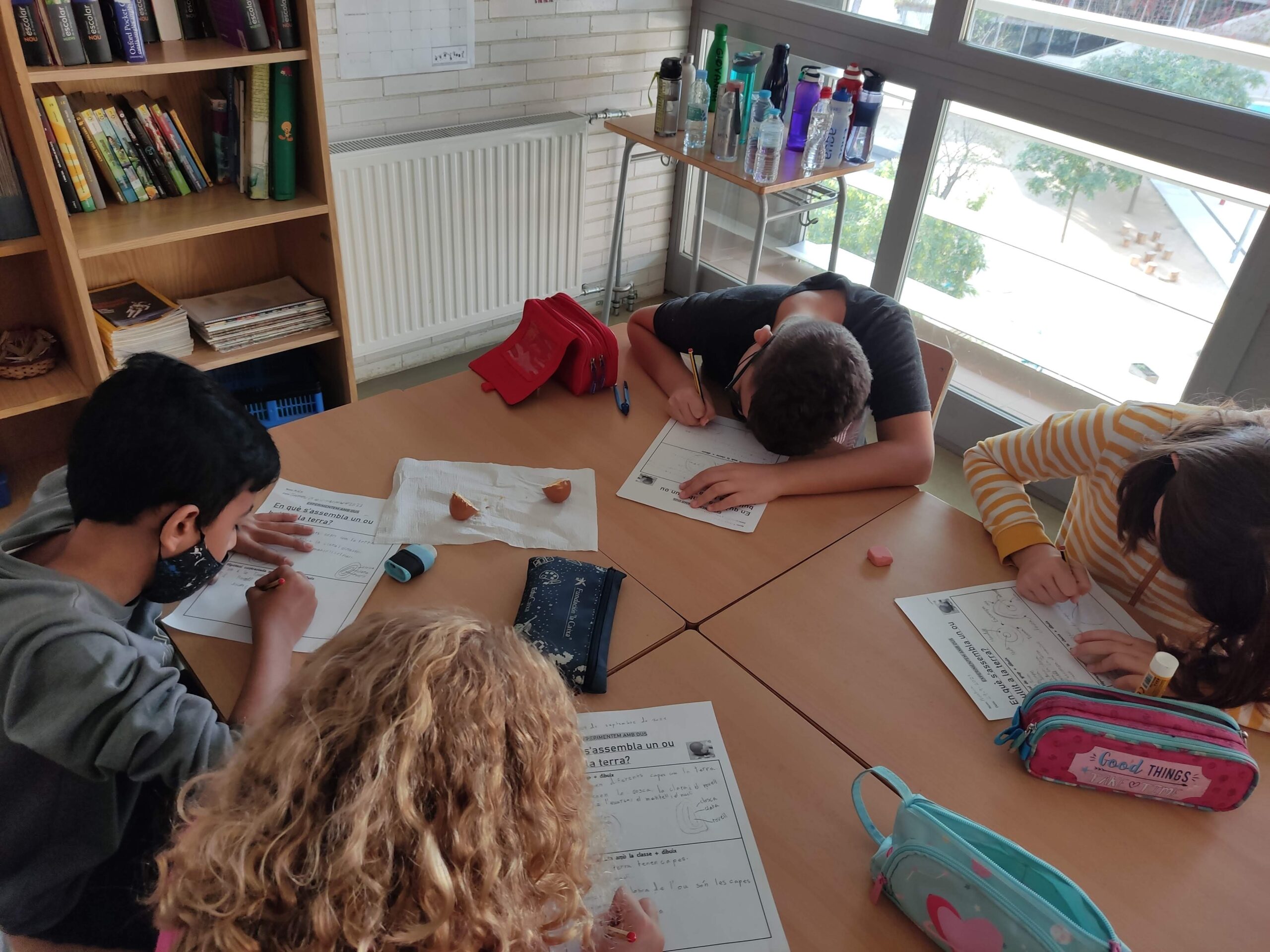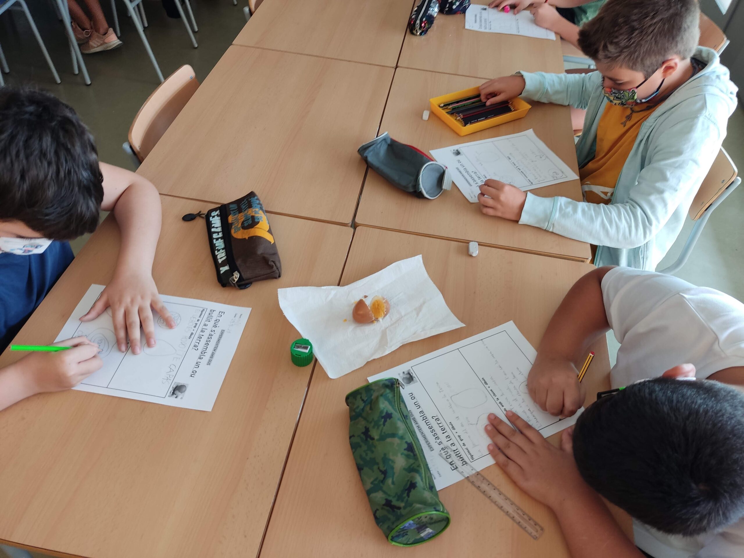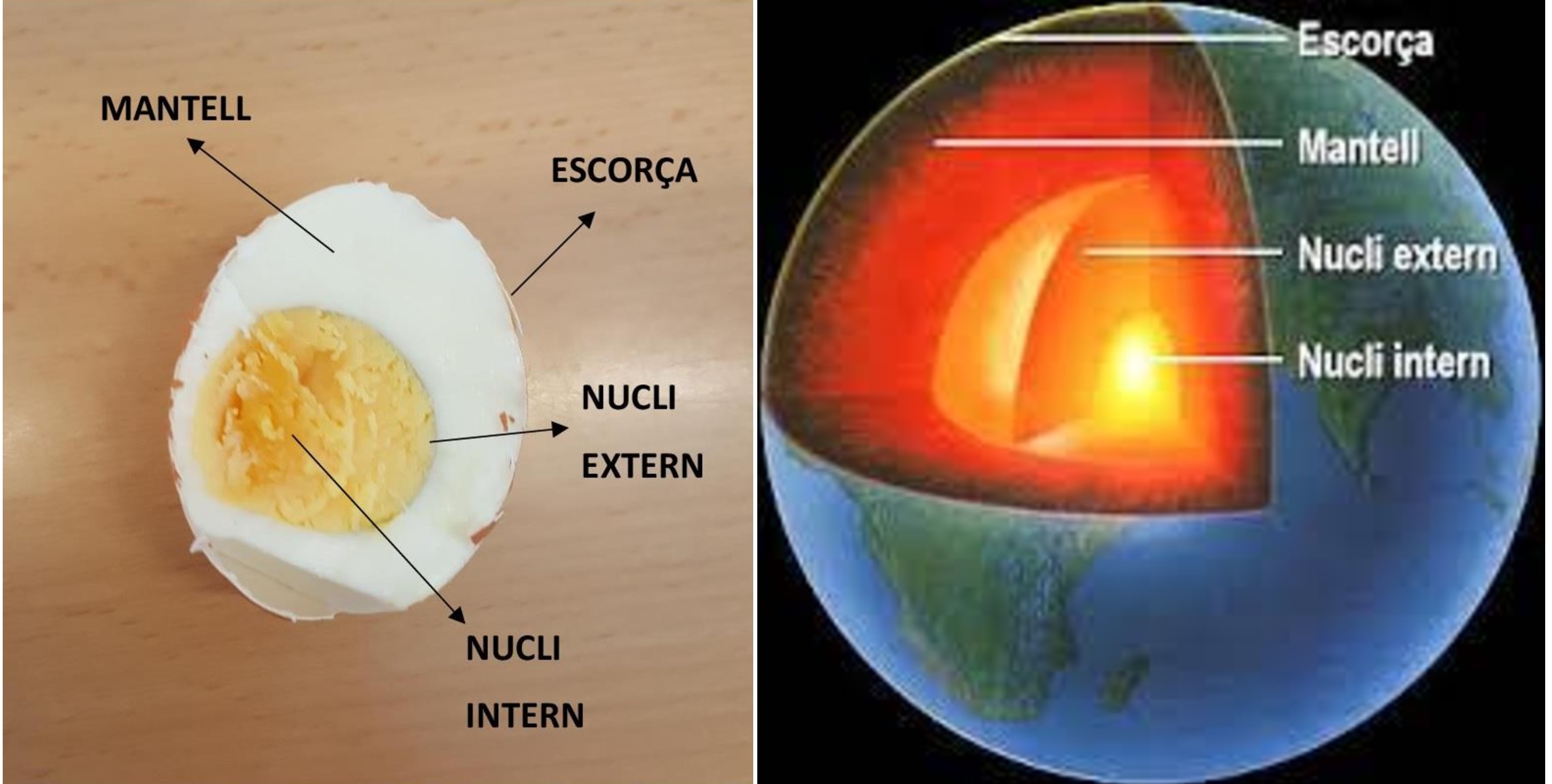 Els alumnes de 5è estem treballant la Terra i les seves capes. Avui hem descobert que el nostre planeta té moltes semblances amb un ou dur. Després de fer moltes hipòtesis i examinar-los tant per fora com a dins, hem vist que la terra té les mateixes capes que té un ou. La closca seria com l’escorça, la capa externa del nostre planeta; la clara seria la capa més ample, anomenada mantell i el rovell és com el nostre nucli, amb una part més clara que seria el nucli extern i un centre més fosc que seria el nucli intern.