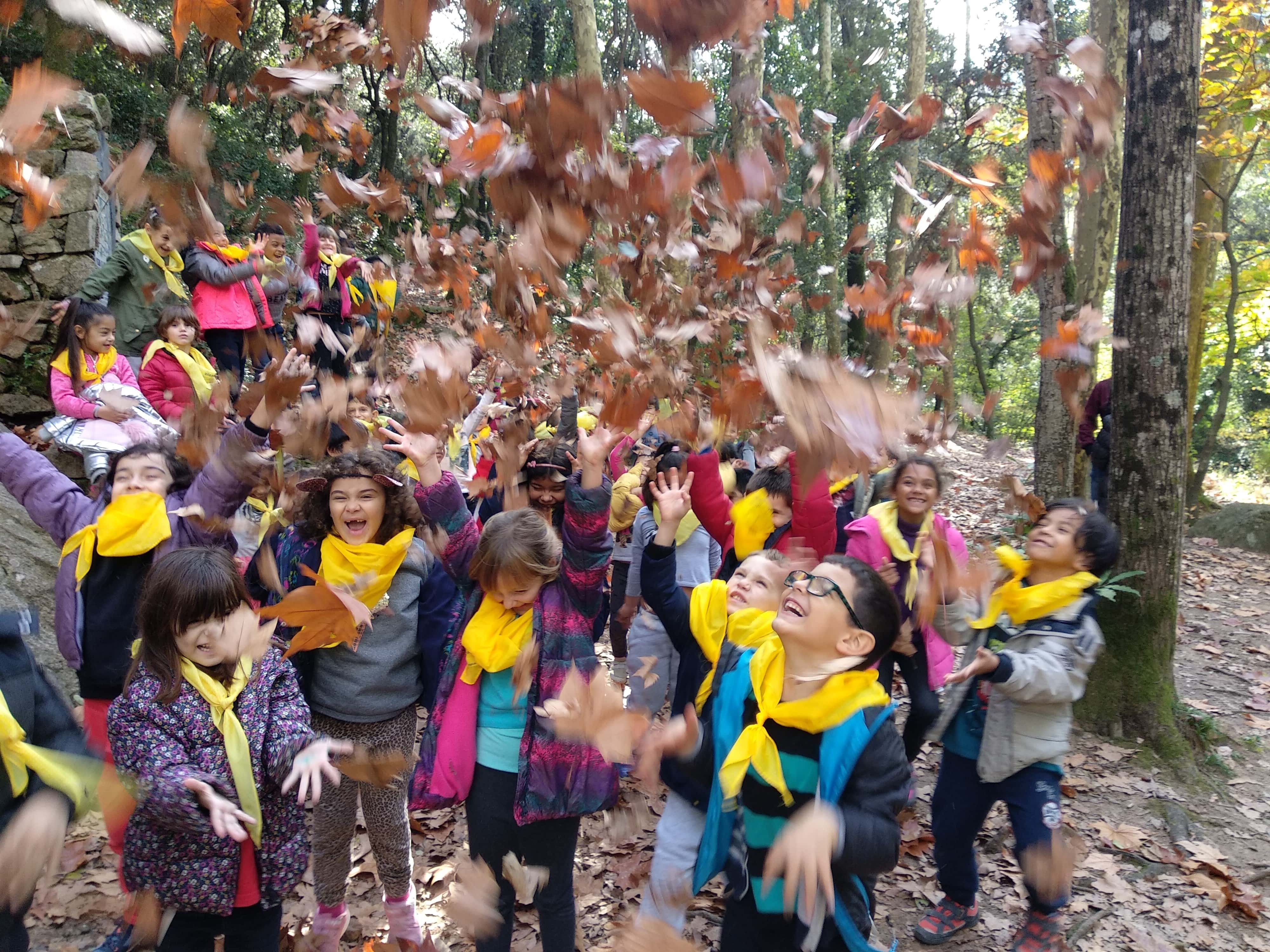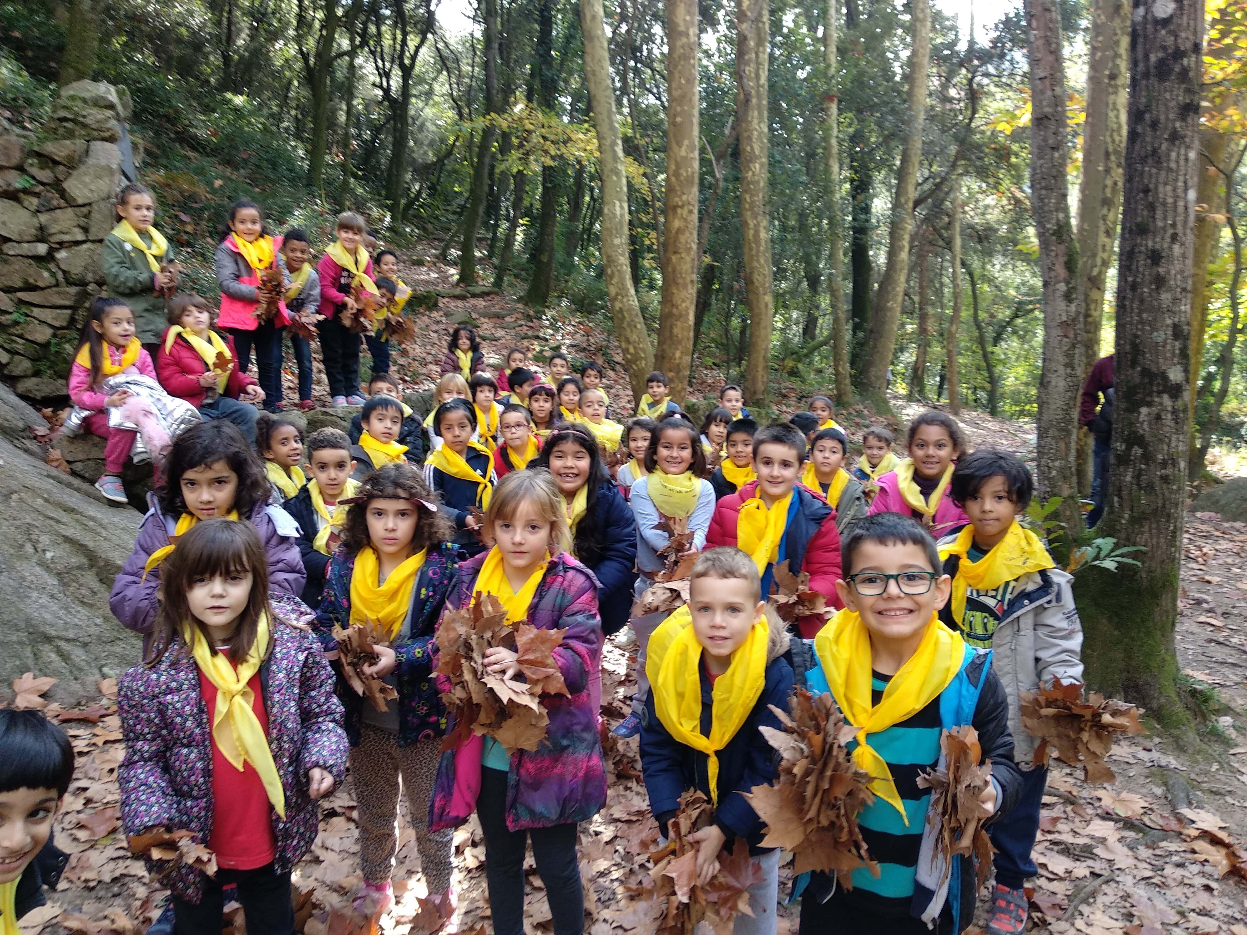 A més de passar-ho molt bé, hem pogut veure com es tranforma un bosc amb l’arribada de la tardor. Vam experimentar amb els colors del arbres i amb les fulles seques que havíen caigut a terra!!!