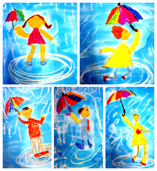 Els nens i nenes de 1r s’han dibuixat molt ben equipats amb botes d’aigua, impermeables i paraigües, jugant sota la pluja i trepitjant bassals, perquè els dies plujosos ens ofereixen experiències divertides!