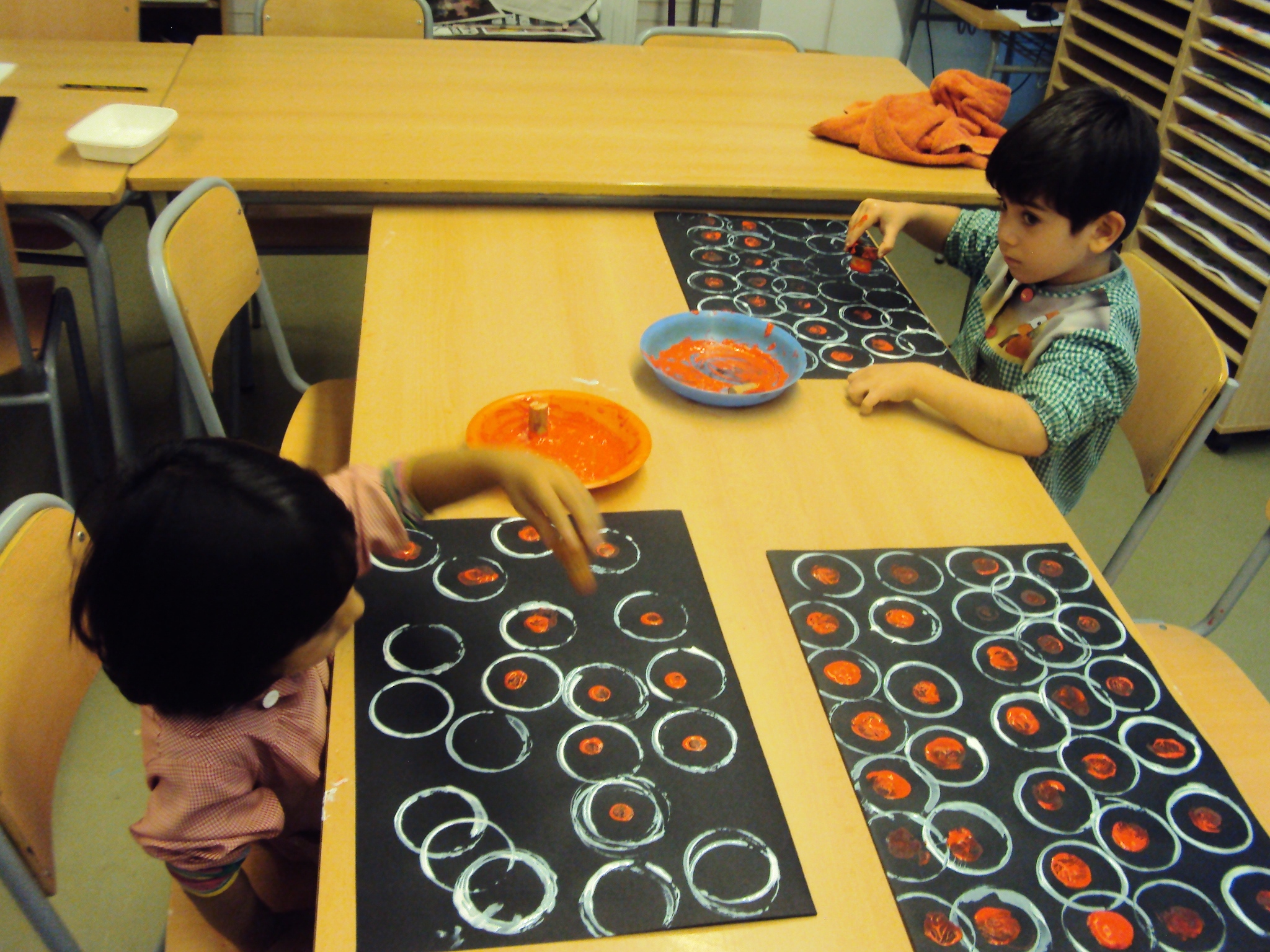 Hem iniciat els tallers del nou curs. Fem coses diferents i divertides; com fer construccions amb volum, treballar la castanyera dins l’estació de la tardor, cosir amb paper, estampació i traç.