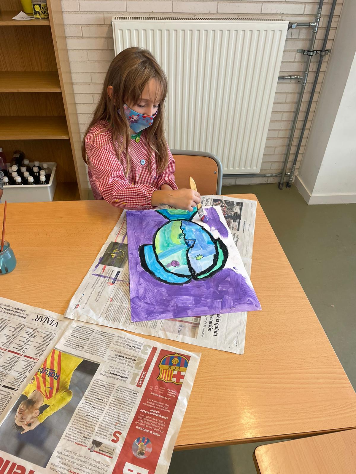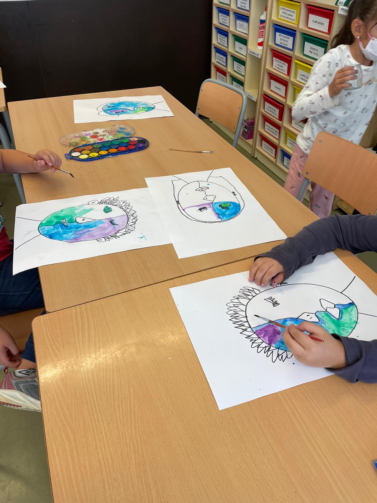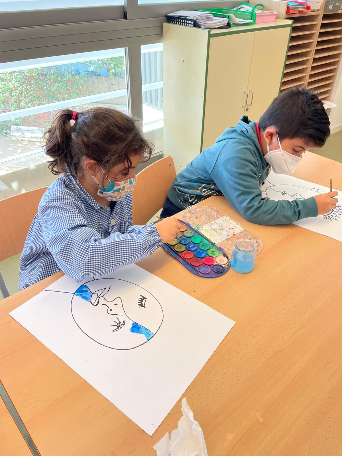 Després hem dibuixat i pintat els nostres retrats a la manera de Picasso utilitzant un joc amb daus, d’aquesta manera l’atzar tria els ulls, el nas i la boca.
