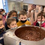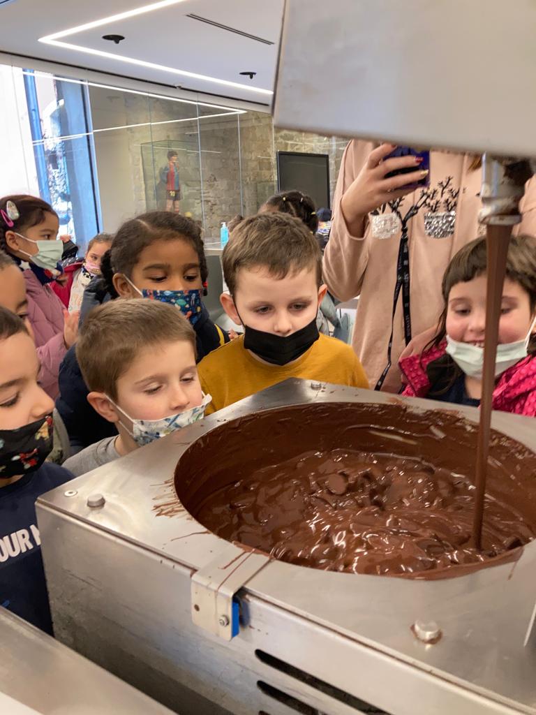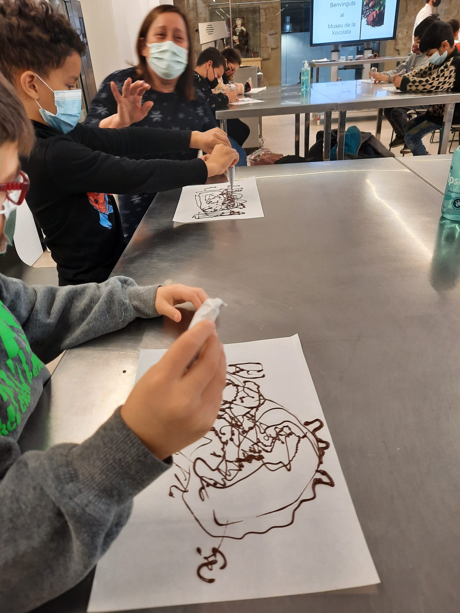 Al dematí vam visitar el Museu de la Xocolata, on vam fer un munt d’activitats relacionades amb la xocolata: vam aprendre els seus orígens, el procés de fabricació, els estris i màquinària que utilitzaven antigament per premsar-lo, moldre’l i ficar-lo en motllos amb diferents formes. Fins i tot vàrem fer un dibuix amb la xocolata desfeta i una xocolatina, ummm boníssima!