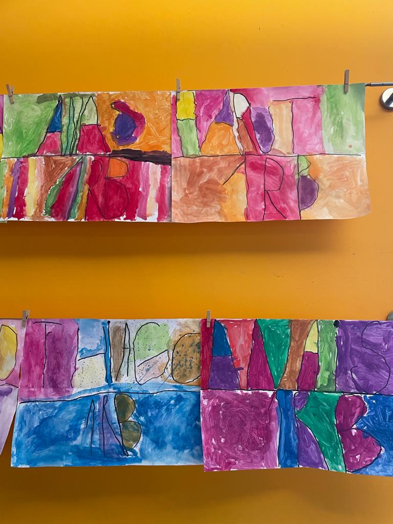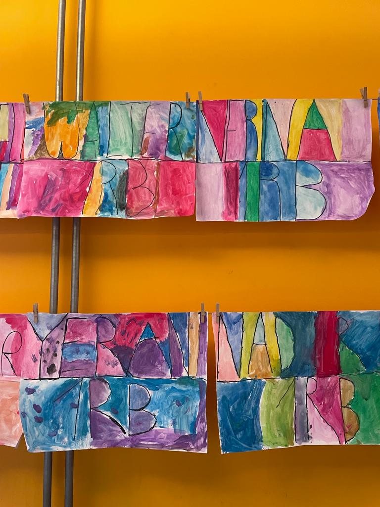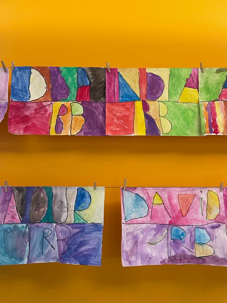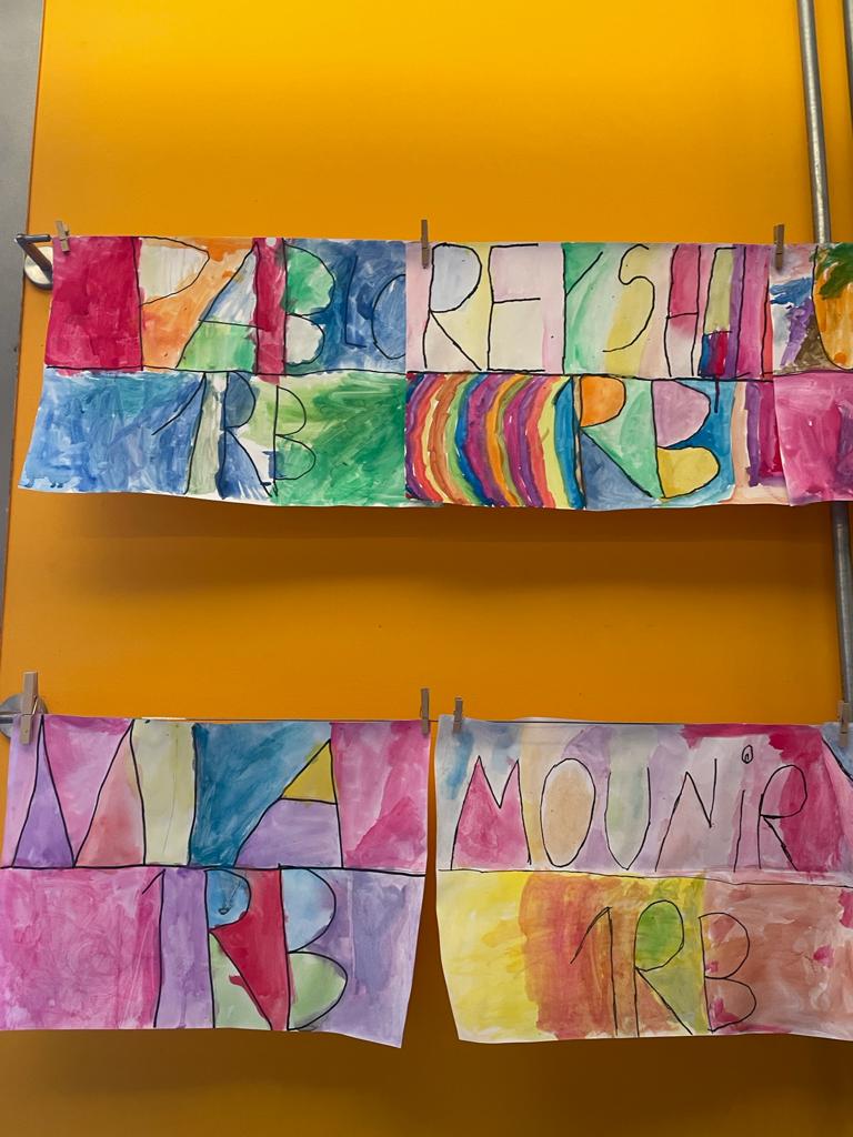 Els alumnes 1r hem creat la nostra portada de la carpeta de plàstica. Hem escrit el nostre nom i el curs, després ho hem repassat amb permanent i per acabar hem pintat amb aquarel·les.