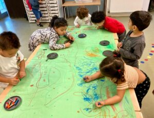Durant aquestes setmanes hem creat entre tots/es un mural alegre i colorit que hem utilitzat per confegir unes banderoles i decorar amb elles la classe. Mireu quins/es artistes estem fets/es!