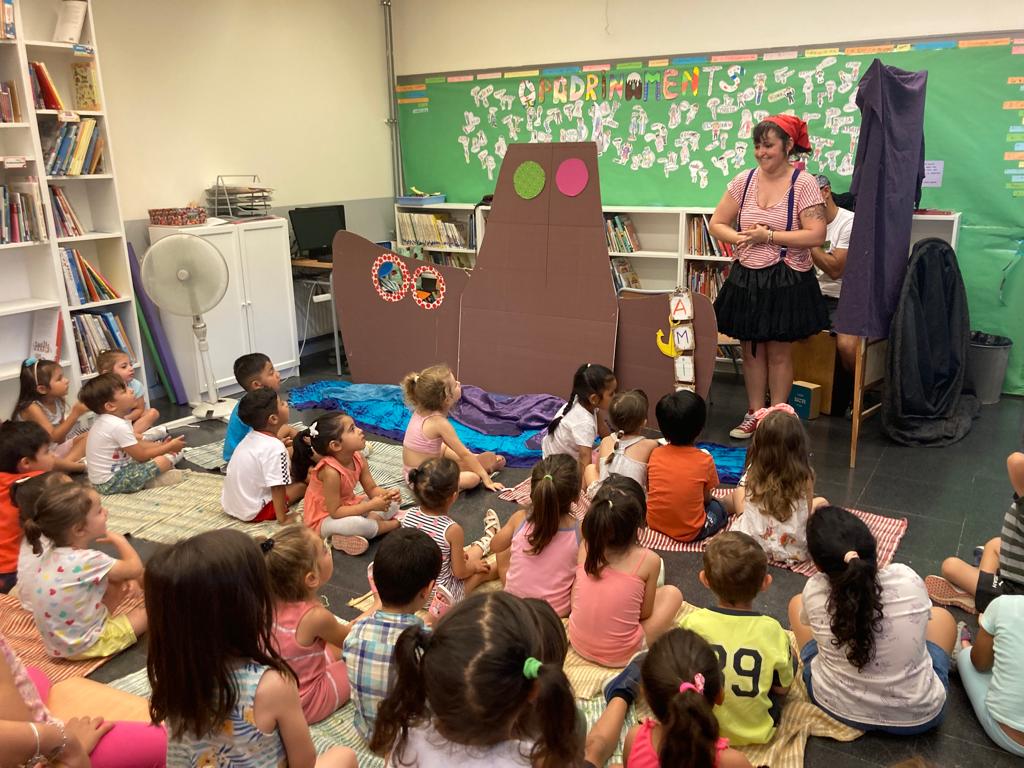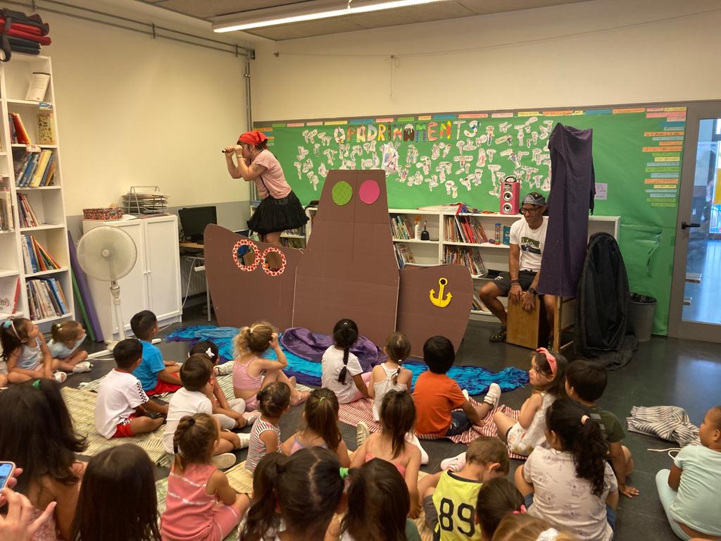 Fa uns dies vam rebre la visita de dues persones molt especials: la pirata Tremenduska i el pirata Fran. A la biblioteca de l’escola, les sopes i les mandarines vam conèixer el seu vaixell i ens vam endinsar al món dels contes! Plegats, vam viure una aventura molt emocionant! I és que amb l’ajuda dels amics que vam fer durant el nostre recorregut: el cargol, l’elefant, la tortuga, el peix i l’esquirol, vam trobar el tresor que el Pirata Bocagrossa havia amagat fa molt i molt de temps: L’AMISTAT. Quin viatge més animat!! Acompanyats de cançons, de ritmes i de sons que ens van transportar directament al mig de l’oceà.