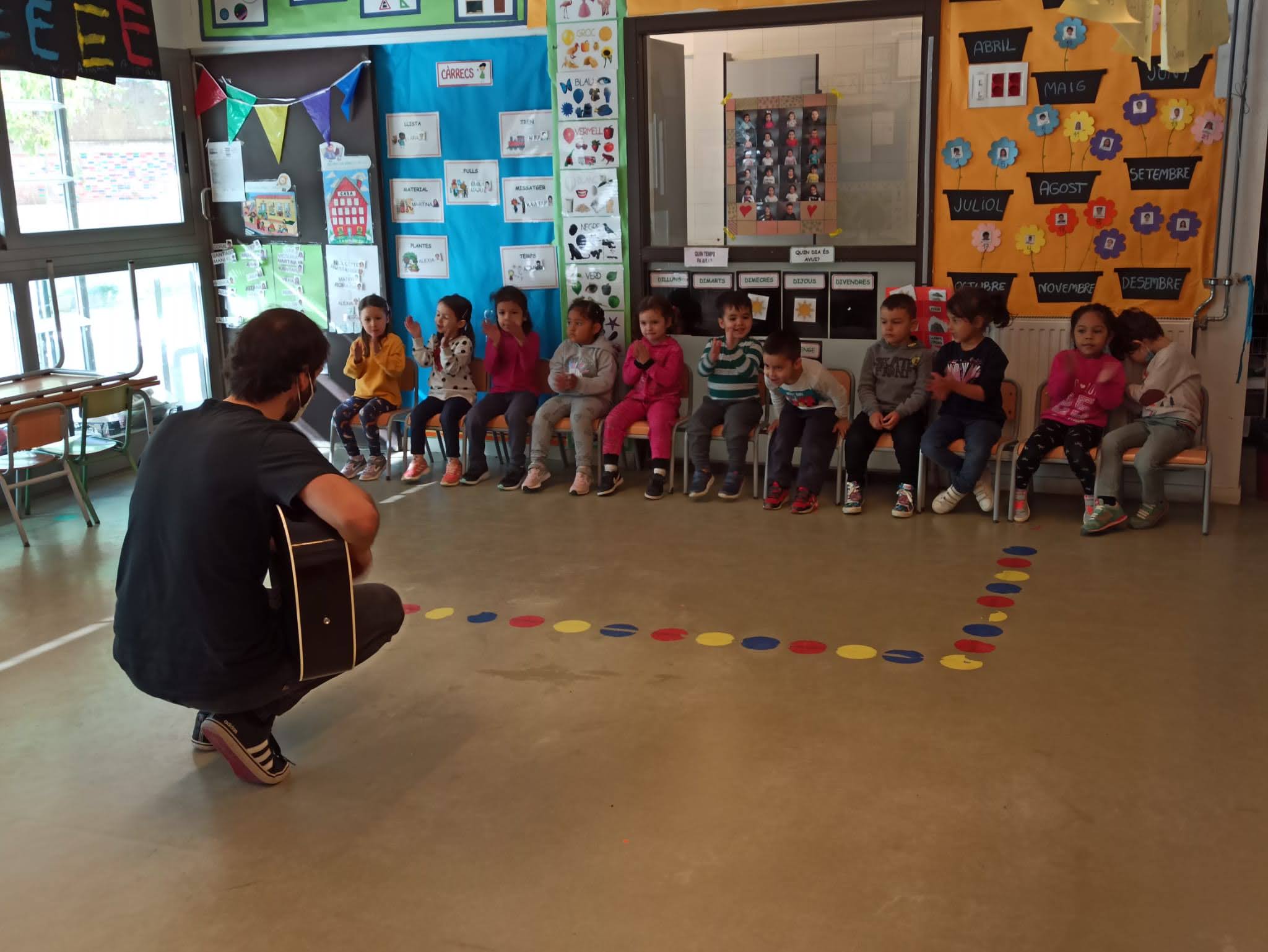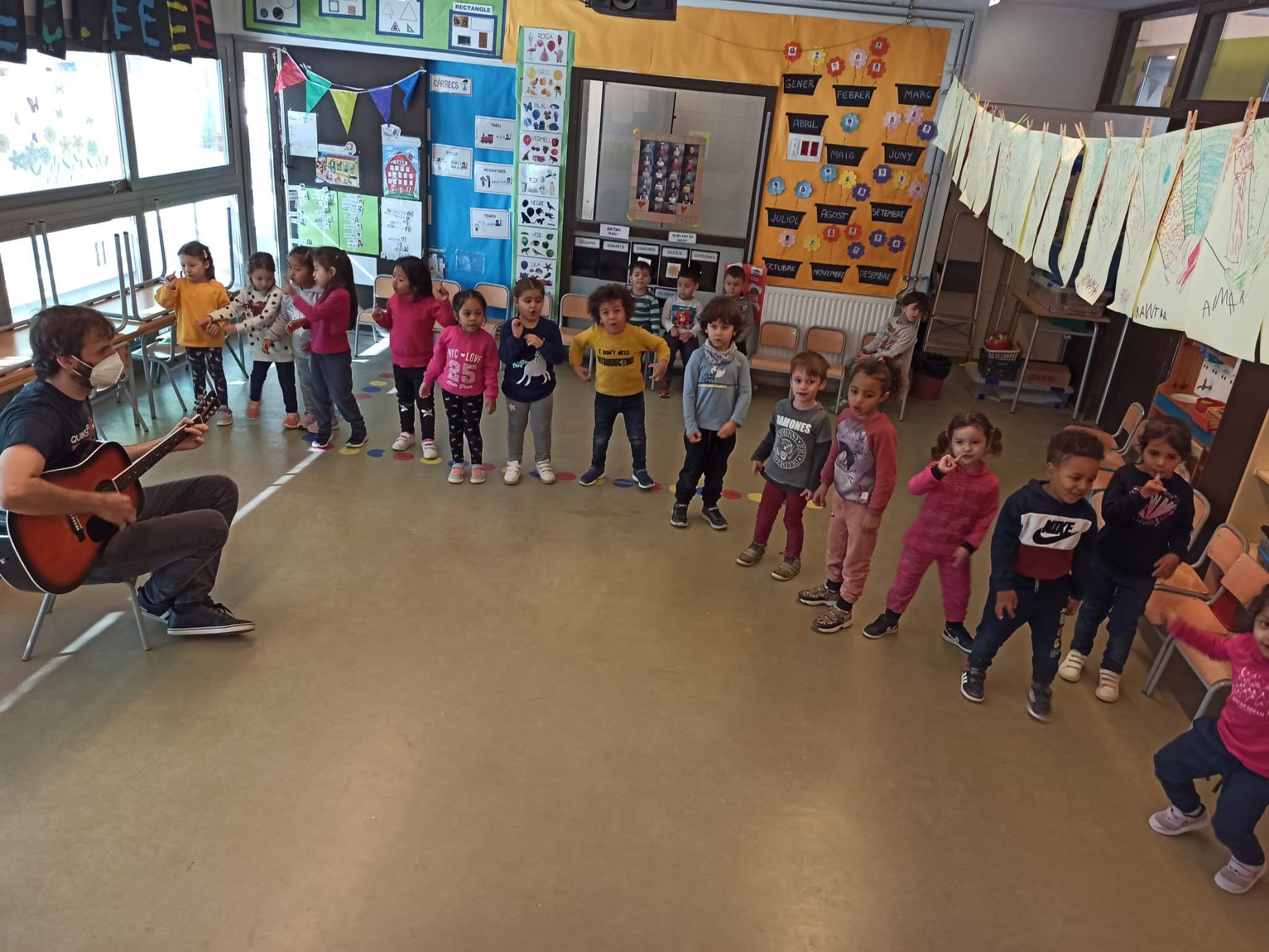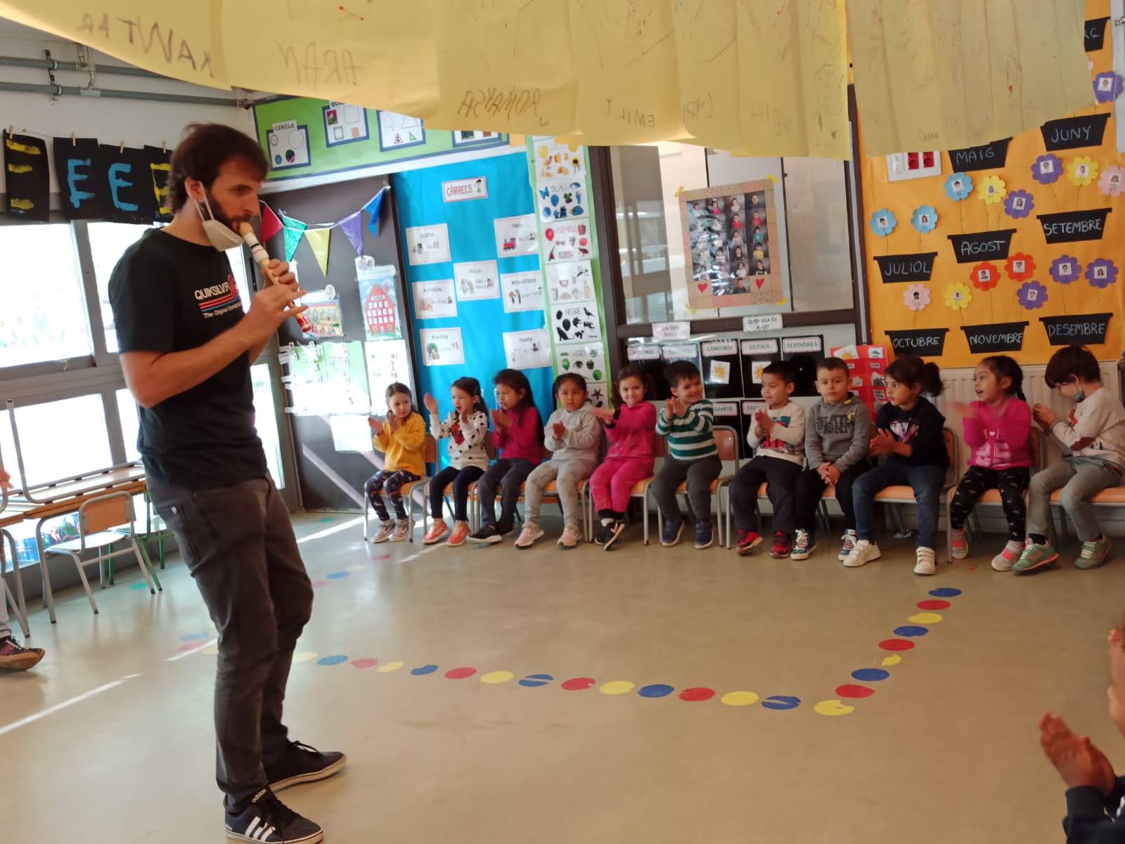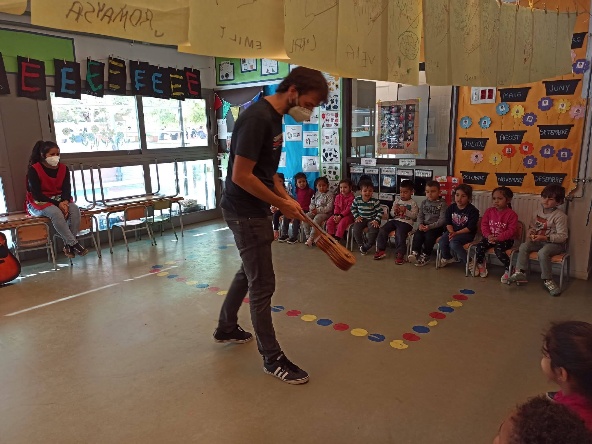 Després va tocar algunes cançons de la tardor, com “Sóc un bolet molt petitó”, “Les castanyes peten peten” i “La rumba de les castanyes”. Vam cantar i ballar i ens ho vam passar molt bé.