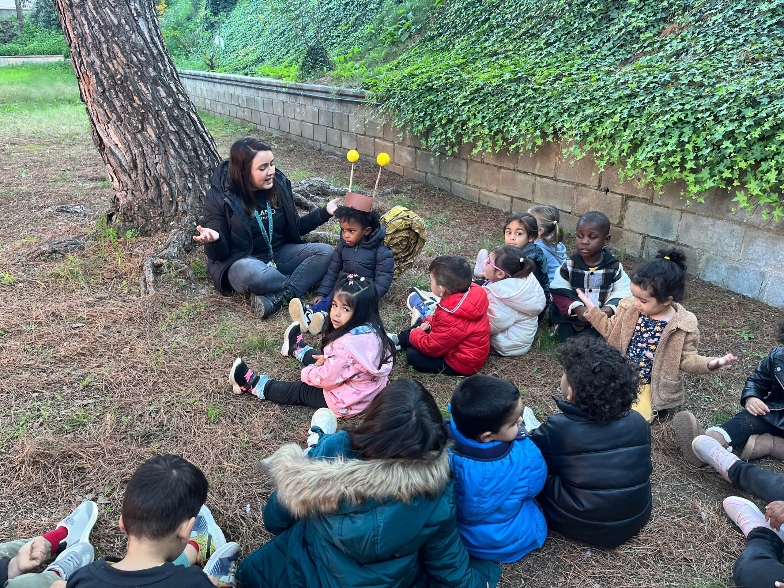 Els infants d’I3, els conills, han estat aprenent un poema sobre el cargol. Per fer-ho més vivencial, hem sortit als voltants de l’edifici de l’escola, disfressats de cargols, per poder recitar-ho sota el pi. Aquesta activitat ens ha permès treballar el poema d’una manera més activa, propera i divertida, en la qual hem pogut combinar l’aprenentatge amb el joc i la imaginació.