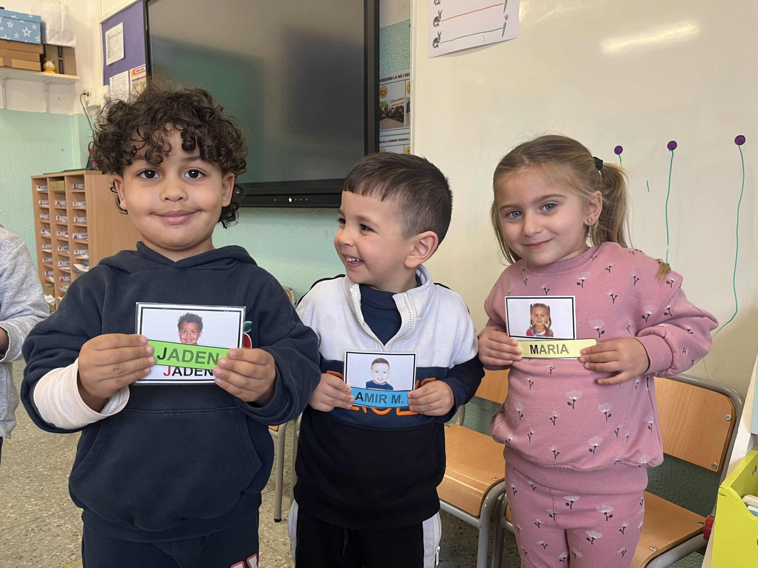 Els infants d’I3 hem començat aquest trimestre a treballar amb el nostre nom. Hem dut a terme diverses activitats per reconèixer les lletres i els seus sons. Comencem la lectoescriptura a través del treball del nom, ja que, d’aquesta manera, els infants comencen a associar cada lletra amb el seu so corresponent, un element fonamental en l’aprenentatge de la lectura. A més, aquest treball els permet començar a comprendre que les paraules es formen a partir de lletres que tenen un significat, una idea clau en l’adquisició del llenguatge escrit.