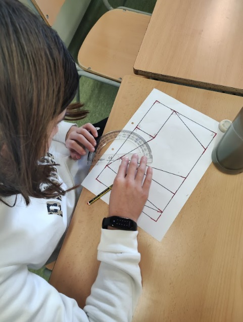 En una altra sessió vam començar mirant unes fotos on apareixien objectes amb els angles marcats. En una graella havíem d’escriure quin tipus d’angles eren, els graus que creiem que mesuraven. Per acabar, darrere del full hi havia una altra activitat on apareixia una forma geomètrica amb molts angles. Havíem de marcar-los tots, mesurar-los i classificar-los.